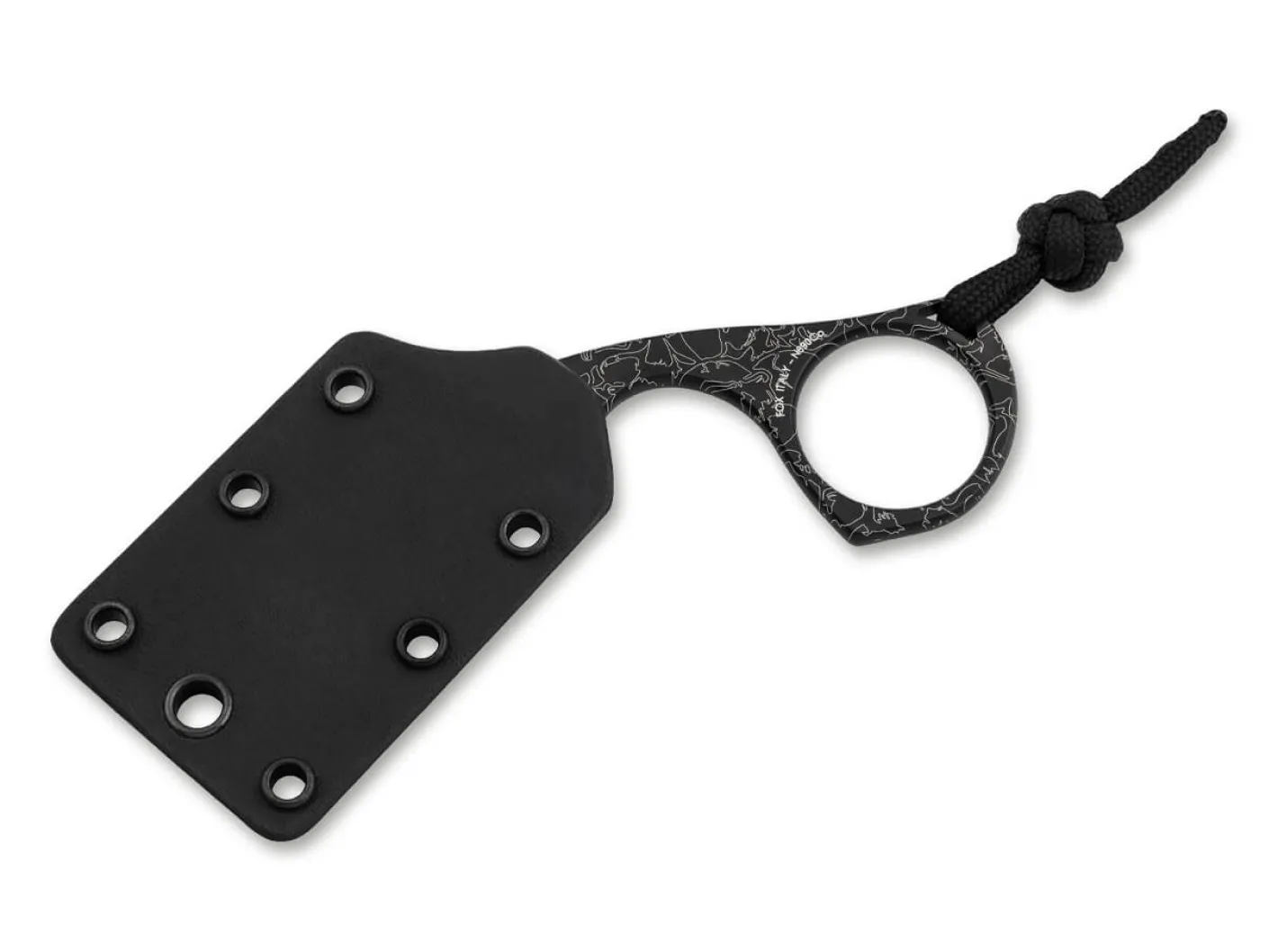 Das Diagnostic ist ein handliches Karambit Neck Knife mit Chisel Grind von Bastinelli. Die Edelstahlkonstruktion aus N690 mit schwarzem PVD-Finish ist mit einem geheimnisumwobenen Totenkopf-Design versehen. Das Daumenloch und die strukturierte Auflagefläche am Klingenrücken garantieren optimale Kontrolle beim Schneiden. Lieferung mit praktischer Kydexscheide sowie Lanyard.