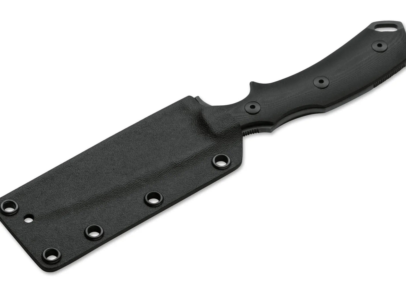 Die ausgefeilte Ergonomie des Fahrtenmessers R.E.D. bürgt trotz der flachen Bauweise für eine extrem sichere Handlage. Die Fingermulden geben der Hand ausgezeichneten Halt, und die Riffelung der langgezogenen Daumenauflage auf dem Griff- und Klingenrücken sorgt für zusätzlichen Grip. So empfiehlt sich das R.E.D. nicht nur als exzellentes Einsatzmesser, sondern auch als komfortabel zu tragender Allrounder für den Alltag. Die schwarz PVD-beschichtete Klinge wird aus N690 gefertigt. Lieferung mit Kydexscheide.