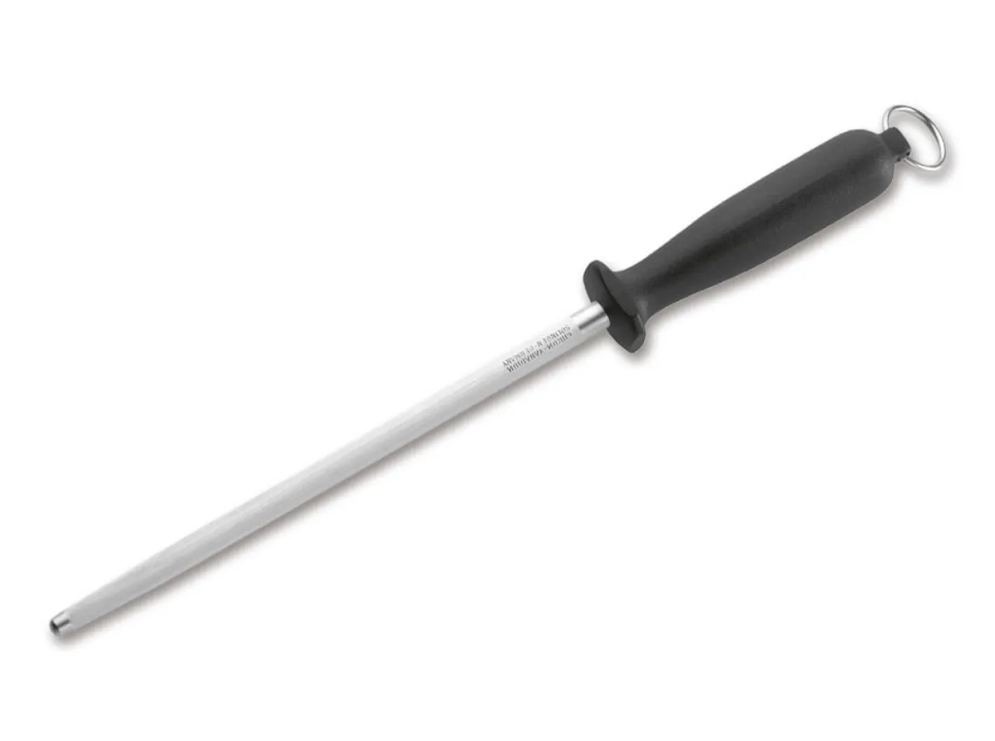 Klassischer 8″ Wetzstahl von Böker Arbolito. Der rutschfeste schwarze Kunststoffgriff liegt sicher in der Hand, die strukturierte Oberfläche des Stahls zieht jede Klinge schnell und unkompliziert ab. Der Schleifstab ist 20,3 cm lang.