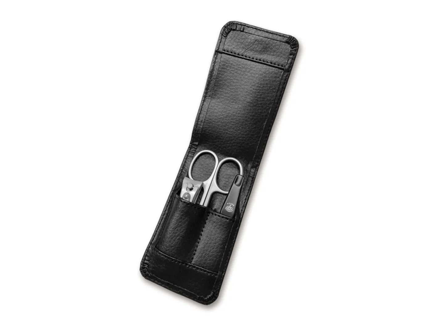 Dreiteiliges Set mit Nagelschere, großem Nagelknipser und -feile.Bisher bedeutete das weite Feld der Nagelpflege für viele Männern Neuland und wurde abfällig belächelt. Spätestens seit Frauen neben Bizeps und Waschbrettbauch vor allem auf gepflegte Nägel stehen, wundert es also nicht, dass der moderne Mann Wert auf ein gepflegtes Erscheinungsbild legt. Auch Barbershops nehmen sich zunehmend der Nagelpflege an, denn gepflegte Nägel signalisieren ein gesundes Selbstbewusstsein. Wie bei der klassischen Nassrasur gelingt eine ordentliche Maniküre nur mit erstklassigen Instrumenten.Die exklusiven Maniküre-Sets von Böker Arbolito werden diesem Anspruch gerecht und enthalten die passenden Instrumente zum Kürzen und Feilen der Fingernägel, zum Ent fernen der überschüssigen Nagelhaut und von Schmutz unter den Fingernägeln sowie zum Polieren der Nägel. Die Etuis sind aus bestem Rindleder gefertigt und bewahren die hochwertigen Werkzeuge sicher auf, auch bei größerer Beanspruchung durch ständiges Reisen. Sämtliche Manikürinstrumente sind aus rost freiem Edelstahl gefertigt und tragen ein edles, mattes Oberflächenfinish.