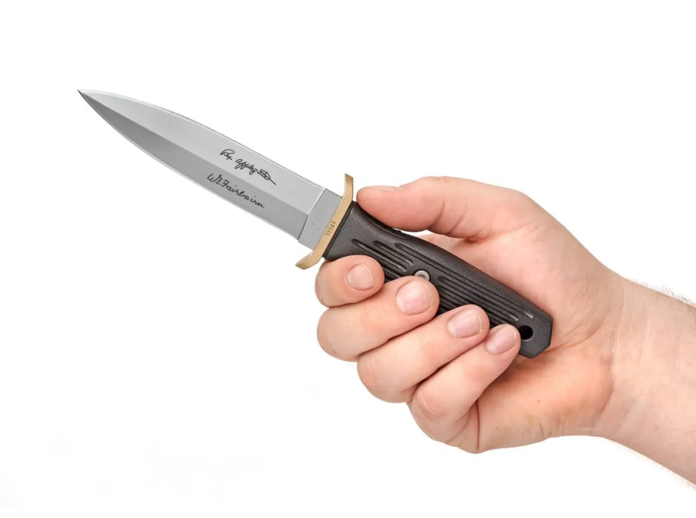 Das Böker Applegate-Fairbairn überzeugt in seinen verschiedenen Ausführungen seit Jahren Einsatzkräfte auf der ganzen Welt und hat so mittlerweile den Status einer echten Ikone erreicht. Das taktische Einsatzmesser geht auf den klassischen Fairbairn-Sykes-Dolch aus dem 2. Weltkrieg zurück und wurde von Col. Rex Applegate entworfen. Der Elitesoldat koordinierte während des Krieges geheime Operationen in ganz Europa und wurde sogar zur persönlichen Bewachung von Präsident Franklin D. Roosevelt eingesetzt. Er trainierte Spezialeinheiten der Alliierten im Nahkampf und gründete die „School for Spies and Assassins“ im heutigen Camp David. Später arbeitete er weiter als Berater und Ausbilder, schrieb zahlreiche Bücher über Nahkampftechniken und begann mit der Entwicklung und Verbesserung des perfekten Kampfmessers.Die kleinere und damit handlichere Ausführung des Böker Applegate-Fairbairn ist nach dem gleichen Konzept entwickelt worden, wie die Urversion. Der glasfaserverstärkte Kunststoff-Griff mit integrierten Edelstahlgewichten liegt sicher in der Hand, der Messing-Knebel sorgt für zusätzliche Sicherheit. Die Klinge aus 440C verfügt auf der einen Seite über einen typischen doppelkonischen Dolchschliff und auf der anderen Seite über einen Hohlschliff. Lieferung mit praktischer Kydex-Scheide und passendem Gürteladapter.
