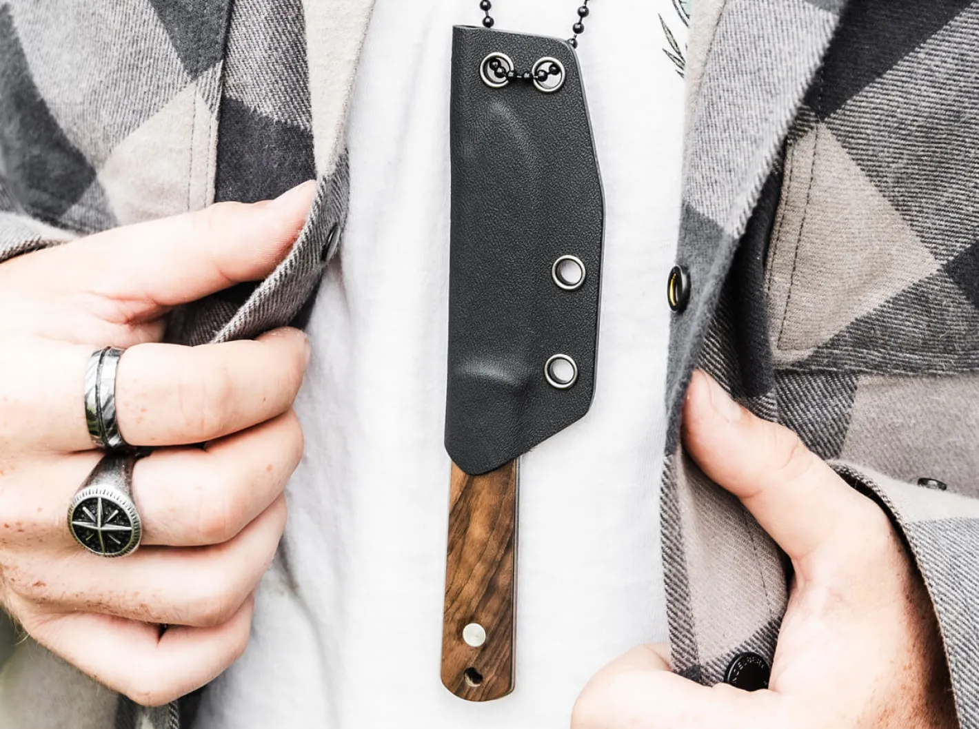 Minimalistisches Design mit maximaler Hingabe: ein Burnley in Reinform, puristisch, für grenzenlosen Entdeckergeist. Mit dem Böker BFF Packlite Walnuss erweitert der US-amerikanische Messermacher Lucas Burnley die erfolgreiche Barlow BFF Serie um ein federleichtes Skelettmesser mit demontierbaren Griffschalen aus heimischem Walnussholz. Die Ganzstahlkonstruktion mit Droppoint-Klinge aus pulvermetallurgischem CPM MagnaCut (61-62HRC) und Stonewash-Finish steht für höchste Stabilität bei hervorragenden Schneideigenschaften. Schnitthaltig, hart, korrosionsbeständig dazu noch zäh – mehr Performance passt in keine Klinge. Eine elegante Fehlschärfe sowie markante Jimpings am Klingenrücken runden den agilen Charakter des feststehenden Messers in optischer wie funktioneller Weise ab. Das vom Designer gelebte Post-Tactical Konzept wird in den gewichtsreduzierenden Aussparungen im Griff stilvoll umgesetzt und unterstreicht damit den taktischen Anspruch als vollwertiges Neck Knife mit zusätzlichen Befestigungsmöglichkeiten. EDC, Tactical oder als Backup Messer – das BFF Lightweight ist so vielseitig, dass es sich nicht festlegen muss und immer offen für neue Aufgaben ist. Lieferung mit knackig sitzender Kydex Scheide und Kugelkette. Handgefertigt in der Böker Manufaktur Solingen.