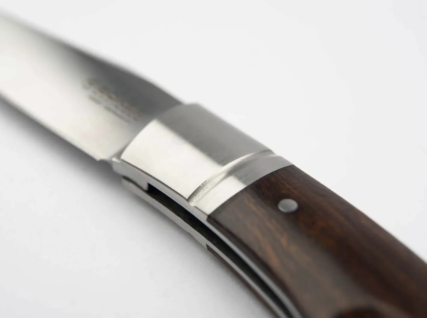 Raphaël Durand aus Thiers ist als Custom-Messermacher inzwischen einer der gefragtesten in Frankreich. Seine handgearbeiteten Stücke erzielen international Höchstpreise, und sein Auftragsbuch ist mehr als voll. Umso mehr freuen wir uns, nach dem Slack von Böker Plus nun aus unserer Solinger Manufaktur eines seiner gefragtesten Modelle anbieten zu können, das Boxer.Der klassische Backlock vereint mediterrane Einflüsse bei der Klingenform mit denen eines traditionellen Taschenmessers und stellt so eine reizvolle Kombination dar, die eine einzigartige Ausstrahlung besitzt. Die Klinge wird aus N690 gefertigt und ist mit einem feinen Satin-Finish versehen. Die Edelstahlbacken tragen die für Raphaël Durand typische Nut. Die Beschalung besteht aus edlem und widerstandsfähigem zertifiziert importiertem Wüsteneisenholz.Die handliche Größe ist der perfekte Kompromiss zwischen Taschentauglichkeit und Vielseitigkeit im Einsatz, sodass das Boxer ein echter Allrounder ist, der die Freunde besonderer Taschenmesser ganz sicher begeistern wird.