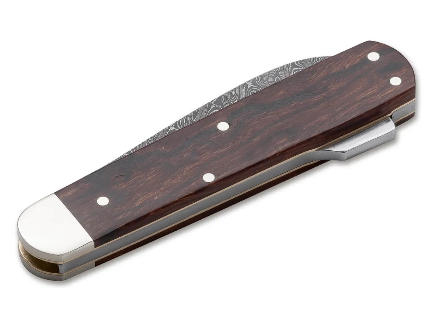 Mit dem Böker Jagdmesser Mono haben wir einen langjährigen Wunsch unserer Kundschaft erfüllt, die nachdrücklich die Wiedereinführung unseres klassischen Jagdtaschenmessers ohne Zusatzklingen gefordert hat. Als Damast Jahresmesser 2018 wird das solide Arbeitsmesser mit einer Klinge aus handgeschmiedeten rostfreien Damast von Chad Nichols aus Mississippi aufgewertet. Das Muster Boomerang kommt auf der breiten Klinge besonders gut zur Geltung und verleiht dem Messer zusammen mit den Griffschalen aus zertifiziert importiertem Wüsteneisenholz und den klassischen Neusilberbacken ein überaus edles Erscheinungsbild. So ist das Böker Damast-Jahresmesser 2018 nicht nur ein exklusives Sammlerstück, sondern gleichzeitig auch ein Jagdmesser, das sich im Revier bestens bewährt. Die solide Klinge verriegelt per Backlock und wir mithilfe des Nagelhaus geöffnet. Das Messer ist auf 999 Exemplare limitiert, jedes von Hand in der Böker Manufaktur Solingen gefertigt. Lieferung im Rahmenetui, für eine gefällige Präsentation in der Vitrine.