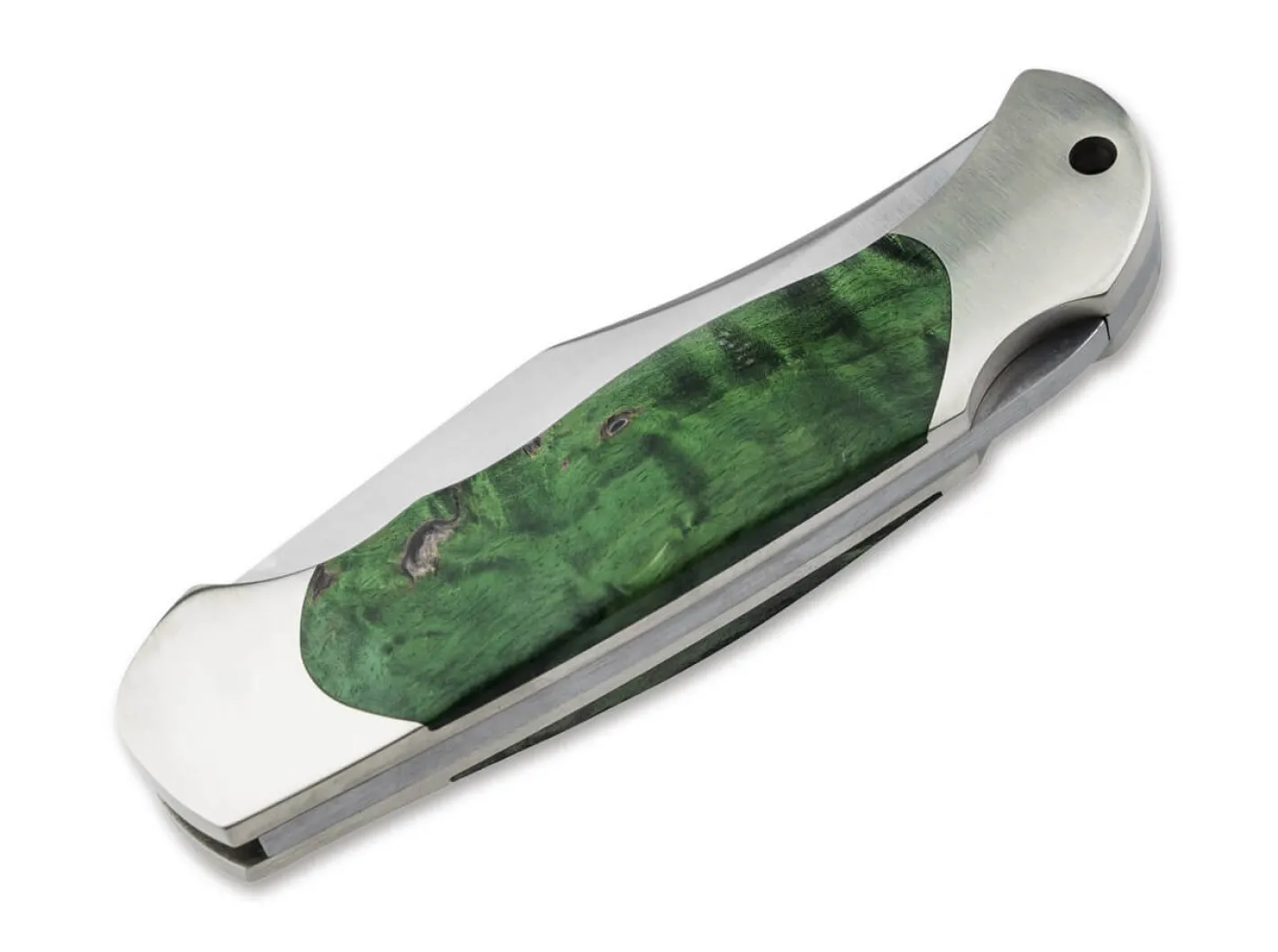 Die Säbelskniep-Klinge unterstreicht den klassischen Charakter des Taschenmessers, ohne dabei im Auftritt aufdringlich oder gar aggressiv zu wirken. Sie wird aus eisgehärtetem N690 mit 60 bis 61 HRC gefertigt und von einem stabilen Backlock arretiert. Mit Fangriemenöse und eleganter Beschalung aus grün stabilisiertem Maserbirkenholz. Handgefertigt in der Böker Messer-Manufaktur Solingen.