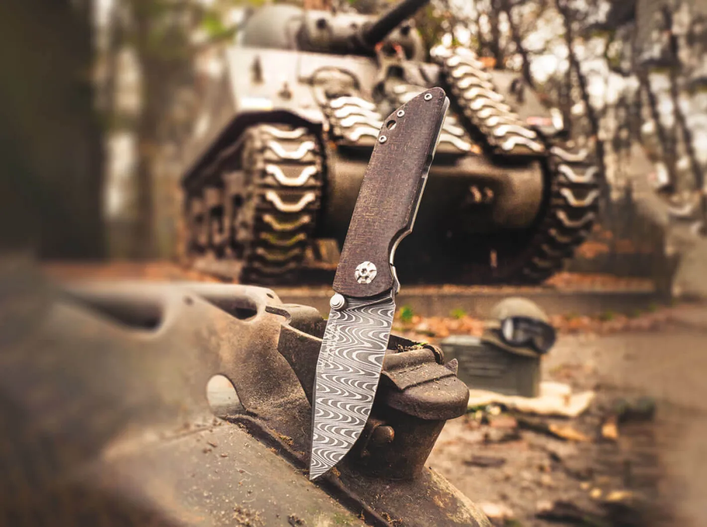 Das außergewöhnliche Böker M4 Sherman-Damast ist ein Stück lebende Geschichte und verbindet hochwertige Handwerkskunst mit historischen Materialien. Der amerikanische M4 Sherman wurde bereits im Jahr 1940 entworfen und gilt bis heute als einer der berühmtesten Panzer der Geschichte. Er wurde zwischen 1942 und 1945 produziert, bis 1957 in Dienst gestellt und auf allen Kampfschauplätzen des Zweiten Weltkriegs eingesetzt – nicht nur von den Vereinigten Staaten und Kanada, sondern auch von Großbritannien, den Freien Französischen Streitkräften, China und sogar der Sowjetunion.Ursprünglich entwickelt, um den mittleren Panzer M3 Grant/Lee zu ersetzen, bestand die Hauptaufgabe des Sherman-Panzers in der Unterstützung der Infanterie, in der Führung von Angriffen und in der Verstärkung von Verteidigungspositionen. Der Sherman wurde knapp 50.000-mal gebaut und ist der am häufigsten eingesetzte Panzer der Alliierten im Zweiten Weltkrieg. Er wurde in unzähligen einsatzspezifischen Variationen gefertigt und bis weit in den Kalten Krieg hinein genutzt.Gemeinsam mit dem Americans in Wartime Museum in Virginia haben wir es geschafft, ein wichtiges Stück verschwundener Geschichte zu bewahren. Das Böker Sherman-Damast ist mit einer einzigartigen Damastklinge ausgestattet, die aus verschiedenen Materialien aus der Produktion von M4 Sherman-Panzern geschmiedet wird, die zuvor vom Museum restauriert wurden. Der einzigartige Damast aus 80 Lagen wird für uns von Hand von Chad Nichols im Muster Customized Ladder geschmiedet und erinnert an die Panzerspuren, die von den schweren Ketten des M4 Sherman im Boden zurückbleiben. Die kugelgelagerte Klinge wird per Daumenpin geöffnet und von einem stabilen Stahl-Framelock arretiert, ein Hinderer Lock-Stop fungiert als Überdehnschutz für die Verriegelung.Die Gesamtform des Messers ist eine Hommage an die ästhetische Linienführung des Panzers, während die dekorative Klingenachsschraube dem charakteristischen Hauptantriebskettenrad nachempfunden ist. Die leicht konturierte Griffschale aus Jute Micarta liegt angenehm in der Hand und erinnert farblich an die Tarnlackierung, die sowohl von der U.S. Army als auch vom Marine Corps verwendet wurde. Mit Fangriemenöse und praktischem Deep-Carry-Clip (Tip-up/r). Handgefertigt in der Böker Messer-Manufaktur Solingen. Auslieferung mit edlem Schwebedisplay, Echtheitszertifikat und individueller Seriennummer.Ein Teil des Erlöses jedes verkauften Messers geht an das Americans in Wartime Museum, um Bildungsprogramme sowie die Pflege und Erhaltung dieser stolzen Beispiele der amerikanischen Geschichte zu unterstützen. Das Americans in Wartime Museum ist eine gemeinnützige Kultur- und Bildungseinrichtung, die sich der Ehrung derjenigen widmet, die in allen Zweigen des US-Militärs und an der Heimatfront vom Ersten Weltkrieg bis zur Gegenwart gedient haben. Das Museum dient der Bildung der Öffentlichkeit, insbesondere junger Menschen, indem es individuelle Geschichten von persönlichen Erfahrungen, Kriegsrealitäten und Opfern erzählt, die von Amerikanern im Kampf um die Bewahrung der Freiheiten erbracht wurden. Das Museum inspiriert die Besucher, indem es ihnen ermöglicht, in einer dynamischen, interaktiven Umgebung Militärfahrzeuge zu erleben, Artefakte zu erforschen und an Nachstellungen und Sonderprogrammen teilzunehmen.Bitte besuchen Sie www.NMAW.org für weitere Informationen und Spendenunterstützung.