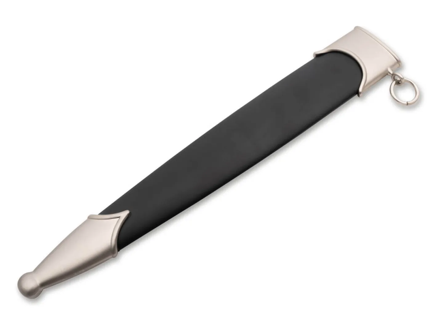 Die authentische Scheide aus Metall ist auch heute ein unverzichtbarer Bestandteil des Böker Schweizer Dolchs. Maße: 25cm x 3,5cm. Passend für den Schweizer Dolch (121550, 121553).