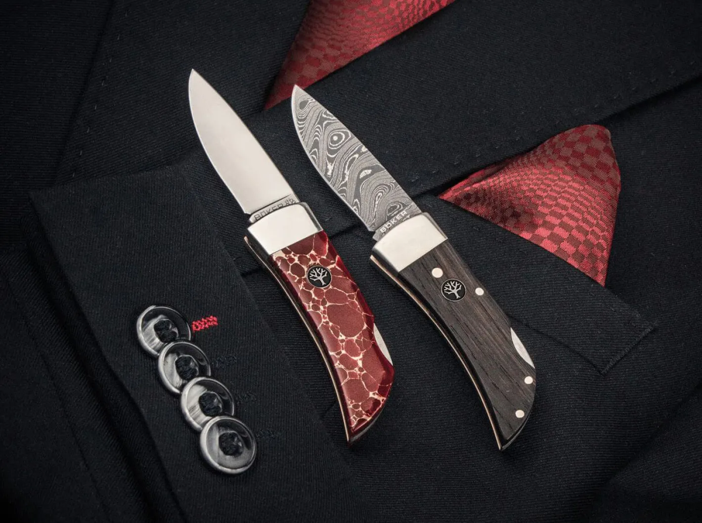 Unser Taschenzwerg, das Böker Pocket, ist seit jeher ein überaus beliebtes Modell für die sprichwörtliche Westentasche oder die Münztasche der Jeans. Die Griffschalen des extrem leichtgewichtigen Taschenmessers bestehen aus heimischer Mooreiche. Die Klinge wird aus 200-lagigem, rostfreien Damast von Chad Nichols aus Mississippi handgefertigt. Das Muster Boomerang kommt auf der kurzen Klinge besonders gut zur Geltung und verleiht dem Messer zusammen mit den dunklen Griffschalen und den klassischen Neusilberbacken ein überaus edles Erscheinungsbild. Verriegelt wird die Klinge von einem klassischen Backlock.