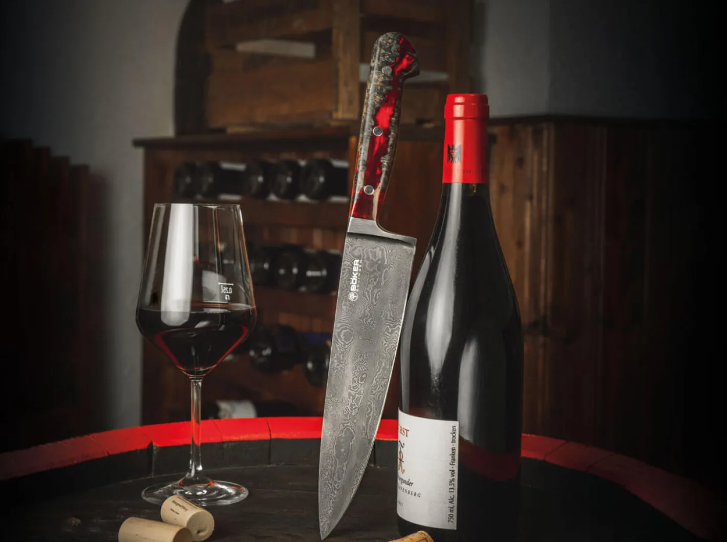 Das beeindruckende Böker River Damast Chefmesser ist im wörtlichen Sinne ein Stück lebendige Geschichte, denn der 180-lagige Damast wurde von Chad Nichols aus einem massiven Teil der Welle eines alten Transmissionsrades unserer Manufaktur geschmiedet. Im nächsten Schritt wird das verschmiedete Spaltstück bei uns in Solingen in der Gesenkschmiede weiterverarbeitet. Nachdem es dort bis zur Rotglut erhitzt wurde, wird es von einem zwei Tonnen schweren Fallbär in einer massiven Form in Kontur geschlagen. Der Griff des außergewöhnlichen Kochmessers im klassischen Solinger Drei-Nieten-Design steht der Klinge optisch und funktional in Nichts nach. Der atemberaubende Tiefeneffekt erinnert an einen mystischen Fluss und wird durch die Kombination von zertifiziert importiertem Amboinaholz mit rotem Harz hervorgerufen. Die Auslieferung des weltweit auf nur 39 Stück limitierten Kochmessers erfolgt mit individueller Seriennummer in einer lederbezogenen Geschenkverpackung und mit Echtheitszertifikat. Handgefertigt in der Böker Messer-Manufaktur Solingen.Das Chefmesser, oder auch Kochmesser, zählt zu den wichtigsten Messern in der Küche und gehört zur Grundausstattung. Es hat eine etwas breitere und längere Klinge als das Allzweckmesser. Die schlanke Spitze eignet sich ausgezeichnet dazu Zwiebeln oder kleines Gemüse zu schneiden. Dank seiner Länge kann man es aber auch hervorragend als Fleischmesser benutzen. Auch große Gemüsesorten lassen sich problemlos damit verarbeiten.