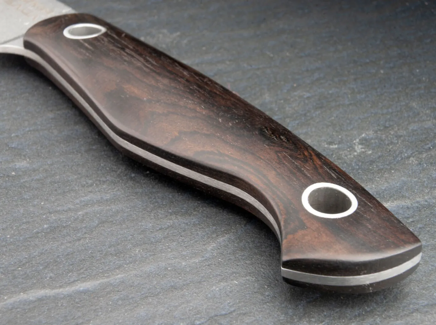 Das Filetiermesser wird hauptsächlich zum Filetieren von Fisch verwendet und gehört daher auch zur Grundausstattung eines jeden Anglers. Es ist gekennzeichnet durch eine lange, schmale und flexible Klinge. Man benutzt es aber auch für andere Zwecke. Beim Fleisch entfernt man mit der scharfen Klinge des Filetiermessers Sehnen oder Haut und auch das Fruchtfleisch von Obst und Gemüse lässt sich damit schnell vom Kerngehäuse lösen.Mit unserer Küchenmesserserie Böker Saga, von Hand hergestellt in unserer Manufaktur in Solingen, vollziehen wir einen Brückenschlag und heben das Thema „Schneiden in der Küche“ auf ein neues Niveau.Unsere jahrzehntelangen Erfahrungen im Bereich Outdoormesser sowie der Ideenreichtum und die Kreativität des dänischen Messermachers Jesper Voxnæs sind in das Konzept und das Design von Saga eingeflossen, um ergonomisch und schneidtechnisch neue Maßstäbe zu setzen. Der sorgfältige Transfer dieses gemeinsamen Know-Hows in den kulinarischen Bereich bürgt dafür, dass das Arbeiten mit Böker Saga zu einem einzigartigen Erlebnis wird.Die sanft geschwungenen Griffe werden aus exklusiv zertifiziert importiertem Grenadillholz gefertigt. Mit seiner hohen Härte und Dichte ist Grenadill u.a. fest etabliert im europäischen Holzblasinstrumentenbau. Schon bei der ersten Kontaktaufnahme mit der Messerserie Böker Saga wird die gelungene Ergonomie deutlich: Jeder Bogen, jeder Schwung in der Linie schmiegt sich an seine Stelle in der Hand und vermittelt eine absolute Kontrolle und ein überragendes Schneiderlebnis. Das schwalbenschwanzartig verbreiterte Griffende der größeren Modelle bringt zusätzliche Griffsicherheit. Die hohe Stabilität verdankt Böker Saga dem komplett durchgehenden Erl, der das Messer (in der gleichen Bauweise wie viele Jagdmesser) von der Klingenspitze bis zum Griffende durchzieht. Für eine optimale Schneidleistung steht nicht nur der komplette Flachschliff der Klinge mit Stonewash-Finish, sondern auch die Wahl von 440C als Klingenstahl, der hinsichtlich Schnitthaltigkeit und Korrosionsbeständigkeit übliche Küchenmesserstähle weit übertrifft. Dieses in einem speziellen Schleifverfahren erzeugte Oberflächenfinish zeichnet sich durch hervorragende Gleiteigenschaften im Schnittgut aus und fördert so die ohnehin ausgezeichnete Schneidleistung. Des weiteren ist die Mikrostruktur des Stonewash-Finish extrem unempfindlich gegen Kratzer, da diese sich optisch in der Struktur oft verlieren..Den besonderen Akzent setzen die großen Hohlnieten, die unverkennbar die Handschrift von Jesper Voxnæs tragen.