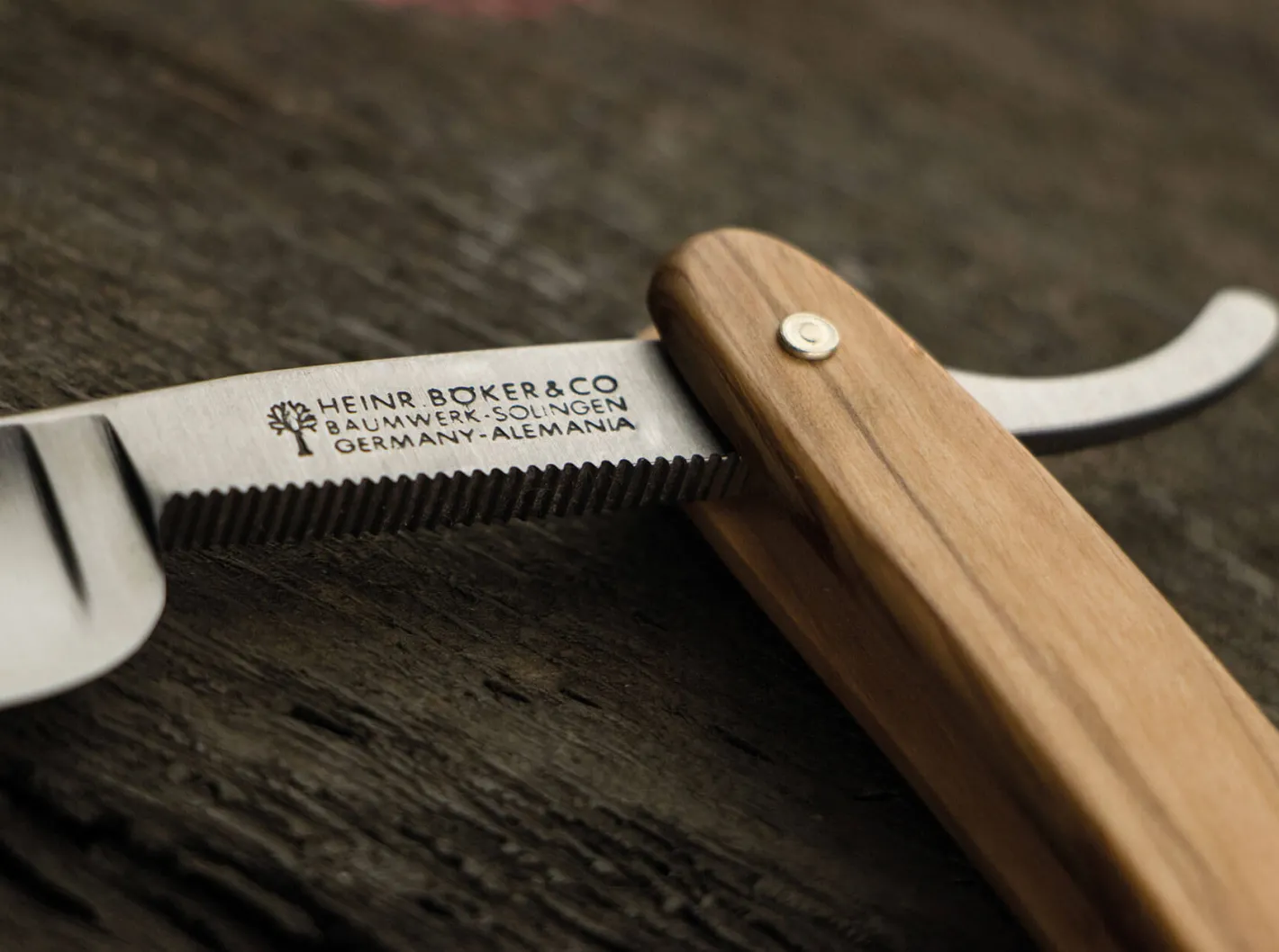 Wiederauflage der berühmtesten Modelle in der langen Geschichte der Böker Rasiermesser. Bereits im Produktkatalog von Boker USA aus dem Jahr 1906 wurden besonders hochwertige Modelle mit diesem traditionsreichen Schriftzug ausgezeichnet. Auch bei den neu konzipierten Modellen mit Heften aus Edelhölzern werden die beliebten 5/8 Zoll breiten Klingen aus Kohlenstoffstahl aufwendig gefertigt und verziert . Die Klinge wird extrahohl mit Wall geschliffen. Inklusive Echtheitszertifikat und historischer Verpackung.Die Beschalung aus handverlesenem heimischen Olivenholz verleiht dem The Celebrated Olive seinen besonderen Akzent und begeistert mit einer lebhaften Maserung. Veredelt ist dieses Modell mit einer partiellen Vergoldung und dem klassischen Böker-Baumsymbol, welches filigran in das Holzheft eingearbeitet wird. Der Klingenrücken ist zusätzlich mit feinen Ziselierungen kunstvoll verziert.Aufgrund der Verwendung natürlicher Materialien weichen die verschiedenen Exemplare teilweise voneinander ab.