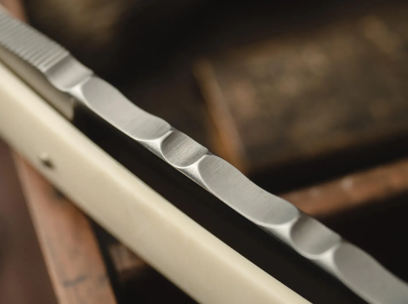Wanted! – Ganz im Zeichen von Saloons, Cowboys und rauchenden Colts steht das Böker The Historical Barber. Benannt nach dem kultverdächtigen Barbier in der Westernstadt Pullmann City im Harz greift das auf 99 Exemplare streng limitierte Rasiermesser wesentliche Elemente historischer Böker Rasiermesser aus der amerikanischen Pionierzeit des Wilden Westens auf und überträgt diese in die heutige Zeit. Die satinierte 6/8 Zoll Klinge aus Kohlenstoffstahl ist extrahohl geschliffen und wird durch den namensgebenden Schriftzug formschön geziert.Die avantgardistische Interpretation des Barber’s Notch gibt dem Messer sprichwörtlich die Sporen und dekoriert das Böker The Historical Barber zum einzig wahren Westernhelden. Gleichsam elegant wie funktionell säumen geschliffene Kullen den Klingenrücken, welche mit der beidseitigen Serrierung des Klingengangs geschmackvoll auslaufen. Nach historischem Vorbild wird das Heft aus künstlichem Elfenbein gefertigt und erhält seine optische Veredlung durch die eingravierten Jugendstil-Ornamente, drei Nieten aus Neusilber sowie dem schwarzen Böker Baumschild. Mit authentischem Böker Stempel im Klingengang, Echtheitszertifikat und hochwertigem Rahmenetui. Handgefertigt in der Böker Messer-Manufaktur Solingen.