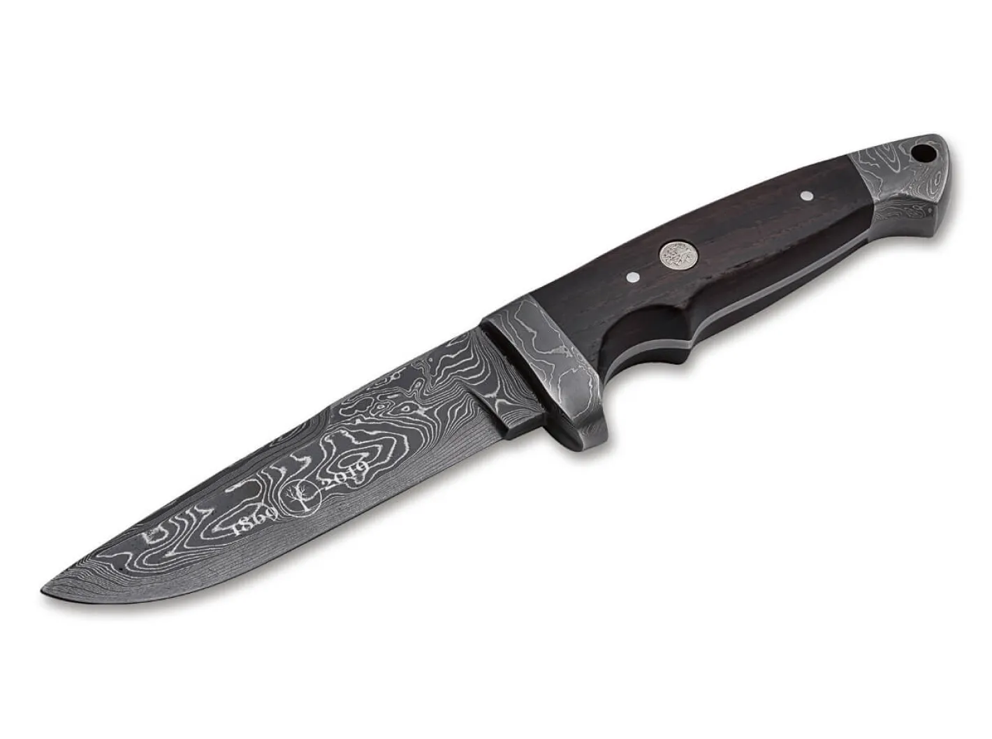 Ein absolutes Highlight in der Reihe der Sondereditionen anlässlich des 150. Jubiläums unserer Manufaktur stellt das Böker Vollintegral mit Damastklinge dar. Das Flaggschiff unter den feststehenden Böker Jagdmessern wird erstmalig im Gesenk aus Damast geschmiedet. Wie schon bei der Jubiläumsversion des Böker Smatchet besteht das Ausgangsmaterial aus 150 Lagen handgeschmiedetem, rostträgem Damast von Chad Nichols aus Mississippi.Passend zum 150. Geburtstag des Böker Baums wird der Griff dieses edlen Sammlerstücks aus besonderem, heimischen Kastanienholz gefertigt, das vor der Montage in einem aufwändigen Verfahren geräuchert wird. Die ebenfalls exklusive schwarze Köcherscheide wird aus bestem Leder gefertigt. Handgefertigt in Solingen und streng limitiert auf 150 Exemplare weltweit. Die Auslieferung erfolgt mit individueller Seriennummer, in einer speziellen Jubiläumsverpackung und mit Echtheitszertifikat.