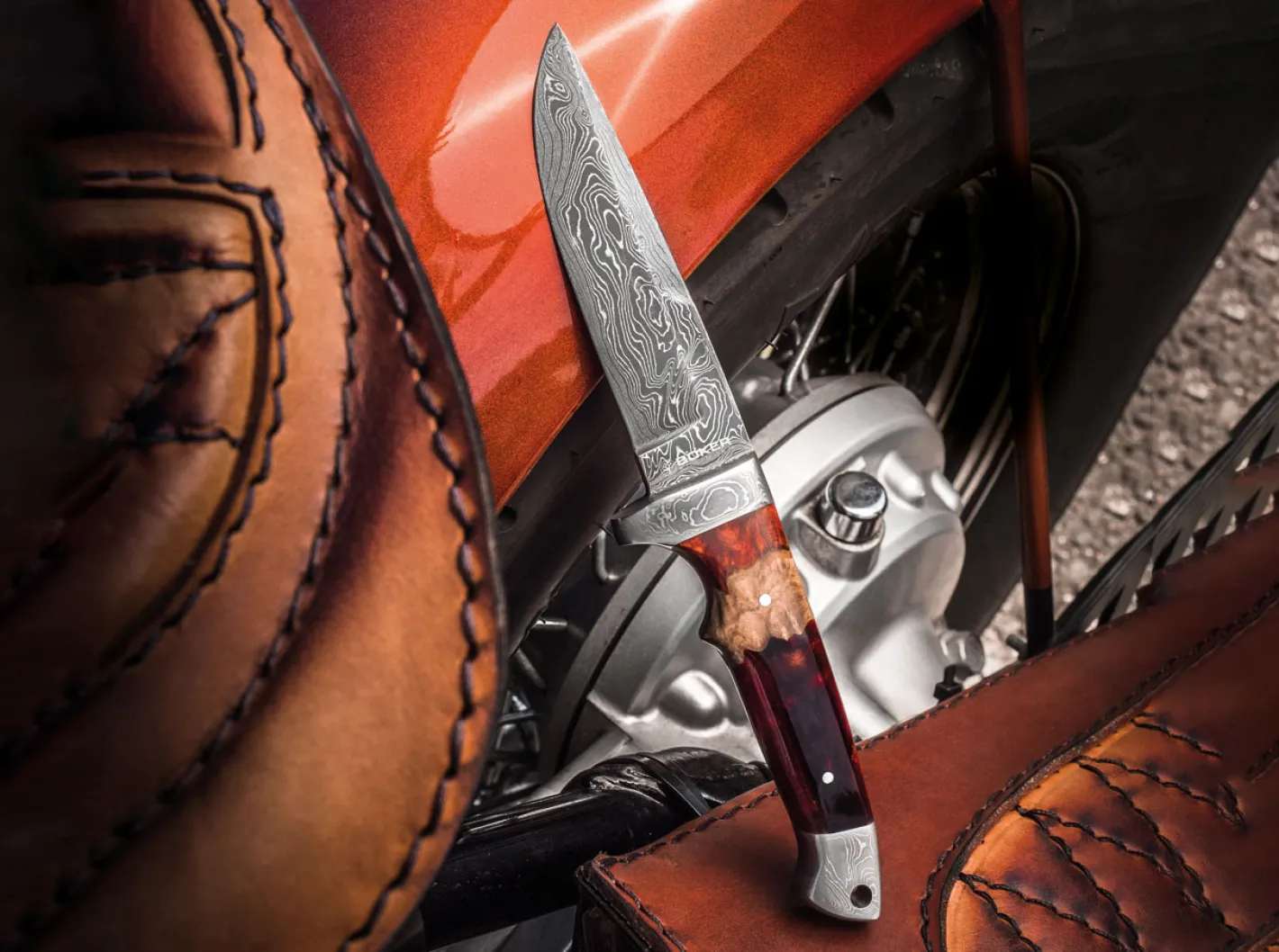 Das beliebte Böker Vollintegral ist seit vielen Jahren ein nicht mehr wegzudenkender Bestandteil unseres Sortiments, und gleichzeitig eine Ikone unter den Böker-Jagdmessern. Das stabile Messer wird in dieser besonders edlen Variante aus einem massiven Stück Damast im Gesenk geschmiedet, das Ausgangsmaterial besteht dabei aus 150 Lagen handgeschmiedetem, rostträgem Damast von Chad Nichols aus Mississippi. Die Klinge ist mit einem Flachschliff versehen, der die Stabilität maximiert. Die polierten Griffschalen mit atemberaubendem Tiefeneffekt bestehen aus einem Hybridmaterial, das aus zertifiziert importiertem, stabilisierten Amboinaholz und rotem Harz gefertigt wird.Die aufwendig konturierten Griffschalen werden zur Minimierung von Fertigungstoleranzen präzisionsgefräst, wodurch die Passgenauigkeit und die Ergonomie auf das höchstmögliche Niveau gehoben werden. Zudem sind der Griff insgesamt sowie die Oberflächen an Parierelement und Knauf angenehm gerundet. Mit passgenauer Lederscheide. Handgefertigt in der Böker Messer-Manufaktur Solingen. Die Auslieferung des auf nur 30 Stück limitierten Sammlermessers erfolgt mit individueller Seriennummer in einer edlen Holzschatulle mit Echtheitszertifikat.