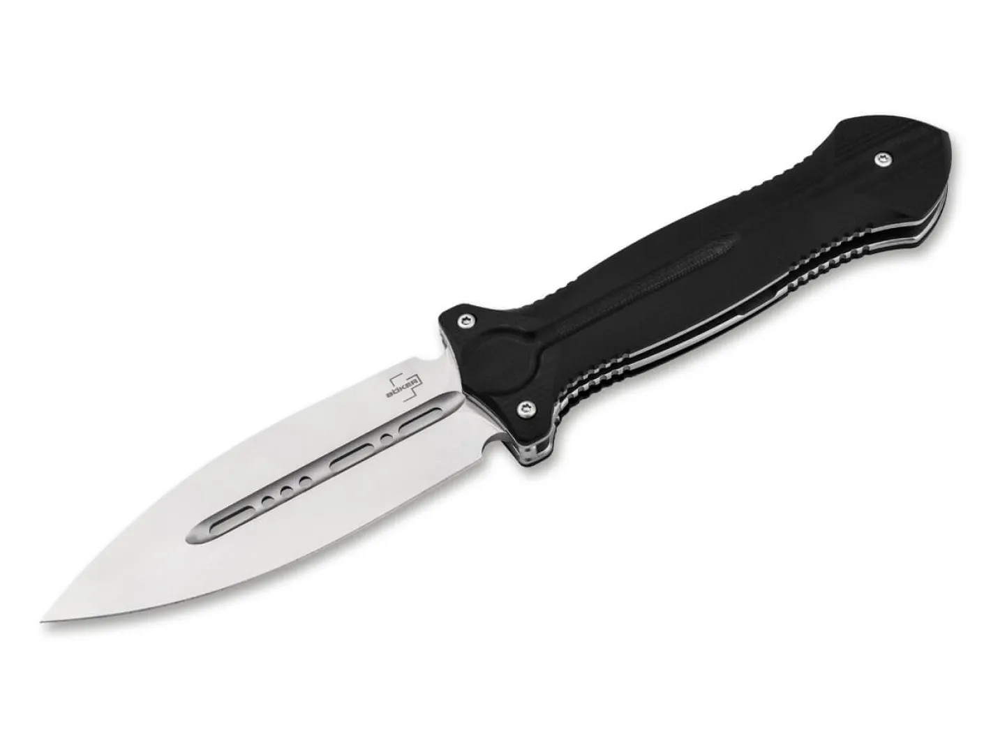 Your choice? The Cheus! – Alexey Ponomarev von Brutalica erleichtert die Entscheidung für das Messer der Wahl mit dem wuchtigen Böker Plus Cheus. In seiner Silhouette an einen taktischen Dolch erinnernd, kommt das Taschenmesser mit einer beeindruckenden Dynamik daher. Kugellagerung, einseitiger Schliff, Stonewash-Finish oder gewichtsreduzierende Durchbrüche in der Hohlkehle – die symmetrische Spearpoint-Klinge aus VG10 besticht mit Schärfe in jeglicher Hinsicht. Im geöffneten Zustand verschwindet der Flipper komplett im Griff für einen aufgeräumten Look. Die ergonomischen Griffschalen aus rutschfestem G10 sind mit zusätzlichen Riffelungen an Ober- und Unterseite versehen und garantieren sicheren Halt, während die mittige Vertiefung im Griff an die Hohlkehle der Klinge anknüpft. Formschön integriert sich der Liner-Lock, der die Klinge felsenfest arretiert – so bleibt selbst hartnäckigsten Schneidarbeiten keine andere Wahl. Mit Tip-Up Clip (r) und hochwertigem Nylon-Etui.