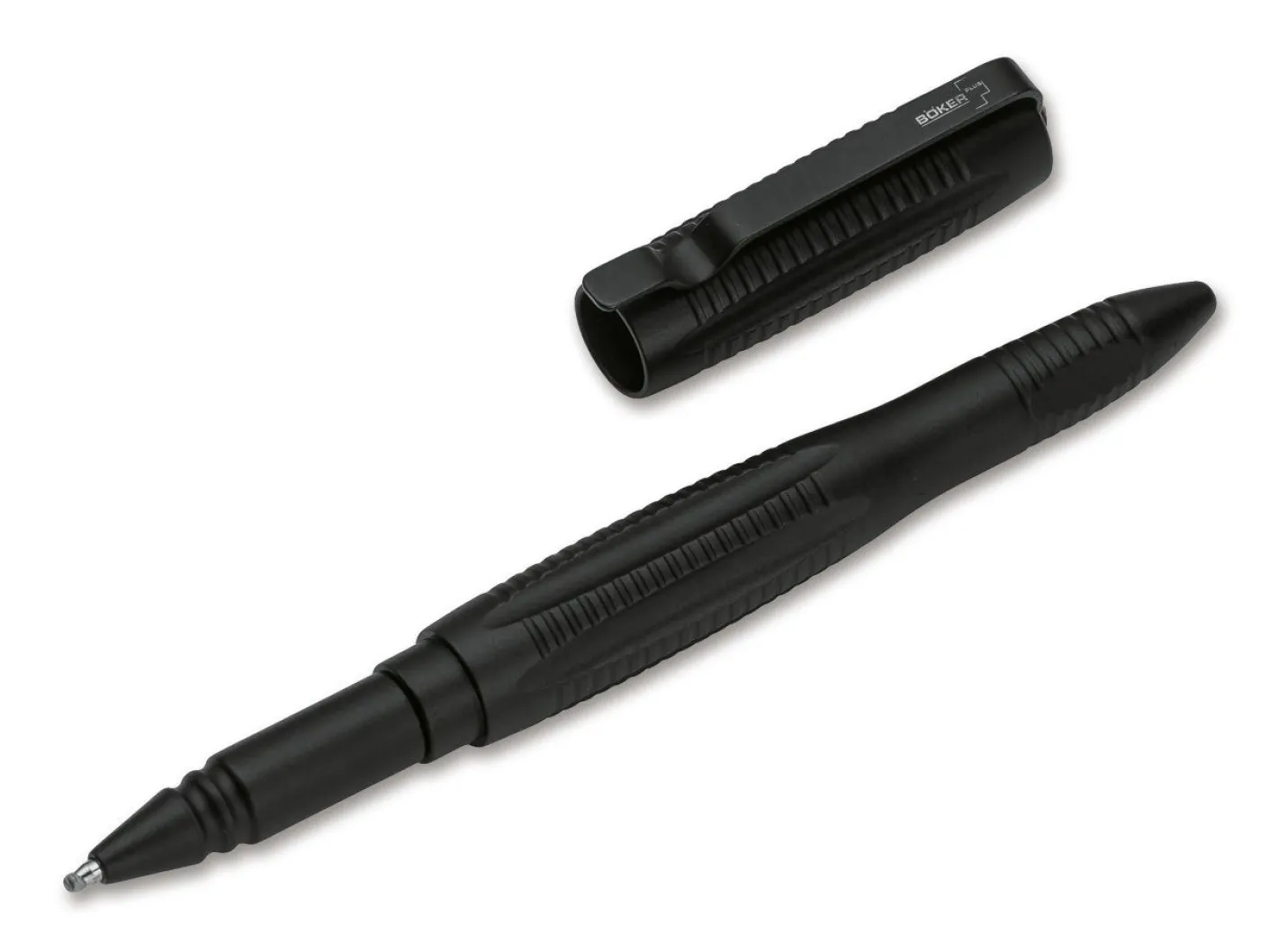 Der Böker Plus Click-On verfügt als erster unserer Tactical Pens über eine Schutzkappe, die nicht per Schraubgewinde gesichert wird, sondern über einen stabilen Rastmechanismus. Das erleichtert vor allem bei häufiger Nutzung als Schreibgerät die Bedienung und steigert den Komfort. Dennoch sitzt die Kappe fest genug, um auch in den weiteren typischen Anwendungen einen sicheren Sitz zu gewährleisten. Mit Glasbrecher auf der Kappe. Auslieferung mit hochwertiger deutscher Mine, kompatibel zu Standard-Großraumminen oder der Fisher Space Pen PR4. Gefertigt aus schwarzem Aluminium.