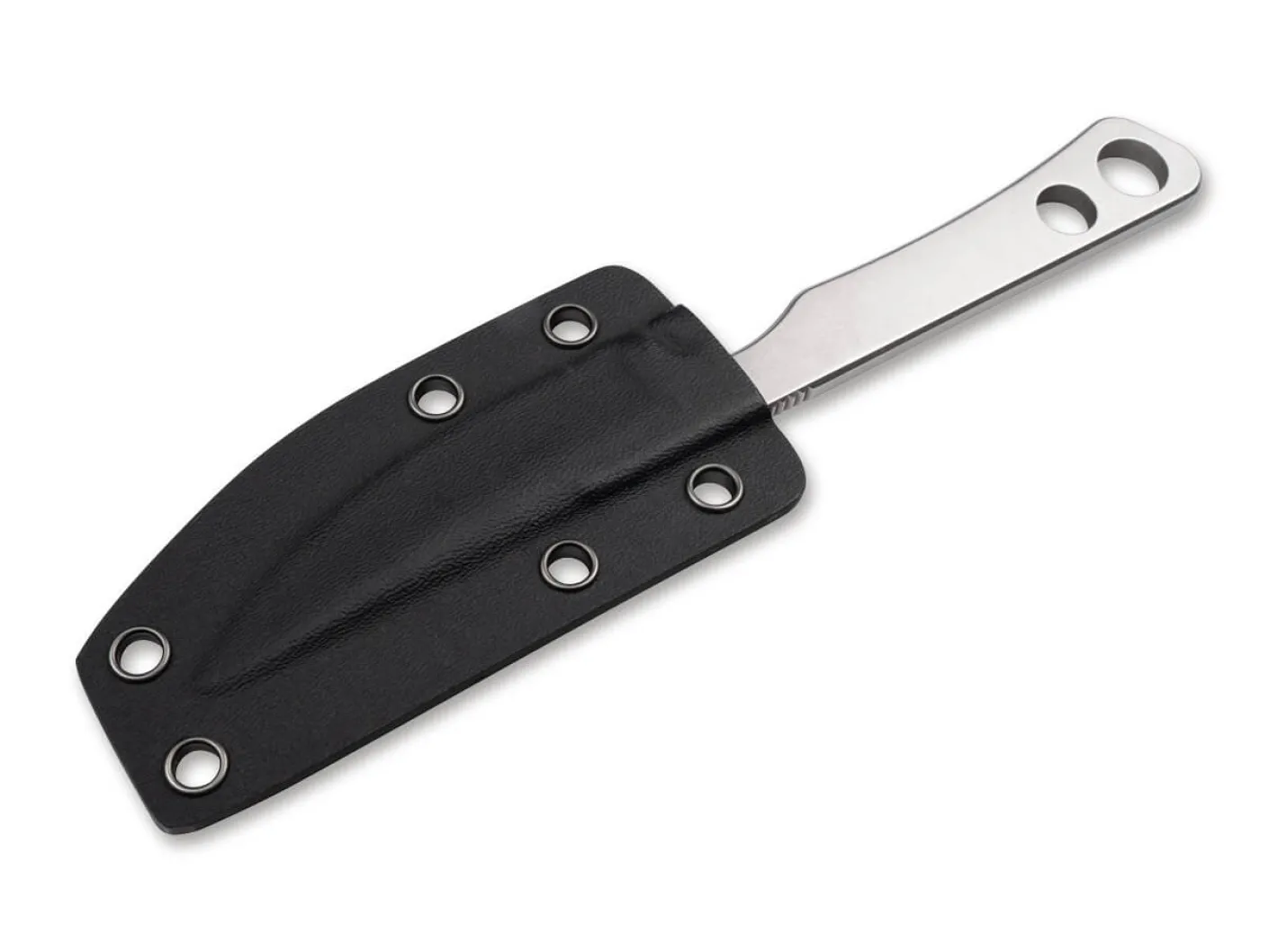 Puristisches Design und chirurgische Präzision als Ausdruck der „Haute Coutellerie“. Der französische Messermacher Charles de Buyer ist bekannt für seine Entwürfe, die auf das Wesentliche reduziert sind und gleichzeitig einen hohen Gebrauchswert versprechen. Das feststehende Messer ist als Ganzstahlkonstruktion konzipiert und weist spannende Details auf. Jimpings auf dem Rücken der schnitthaltigen D2 Klinge verbessern die Handhabung, während der Nagelhau und die ausgeprägte Fehlschärfe dekorative Akzente setzen. Der flache Griff des Gekai vermittelt ein angenehmes Gefühl in der Hand und verfügt über zwei große Aussparungen am Griffende, die Gewicht einsparen und als Fangriemenöse verwendet werden können. Lieferung mit passgenauer Kydexscheide und Gürteladapter.