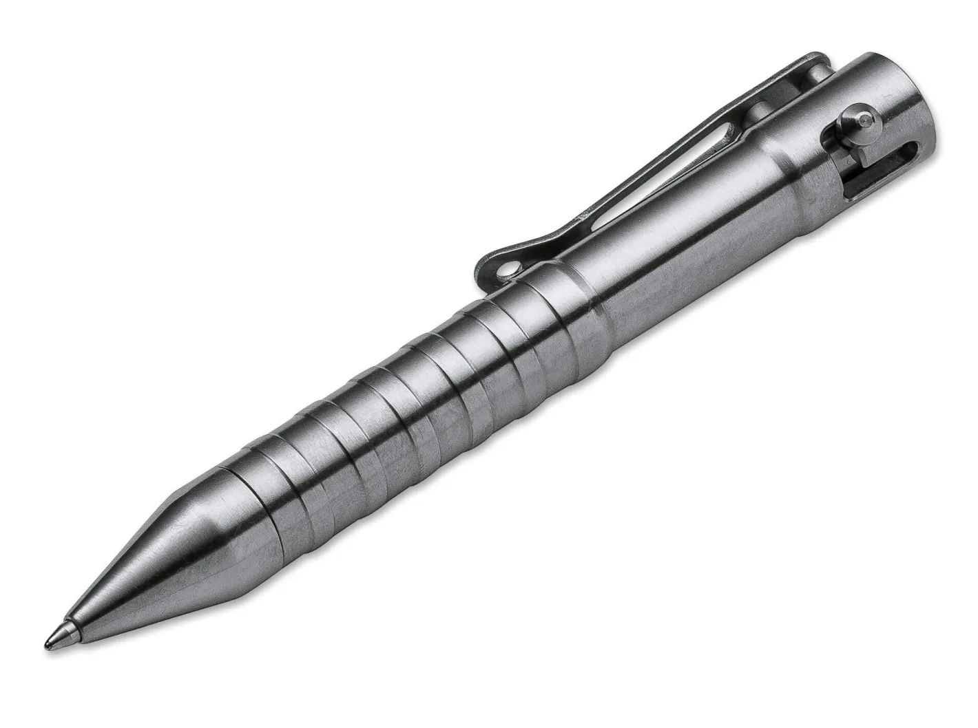 Der K.I.D. cal .50 greift sich sehr angenehm und liegt beim Schreiben ausgezeichnet in der Hand. Das besondere Format des Tactical Pens macht dieses aus satiniertem Titan gefertigte Schreibwerkzeug zu einem echten Hingucker. Großraumminen mit der ISO 12757-2 können als Ersatzminen verwendet werden. Mit Clip.