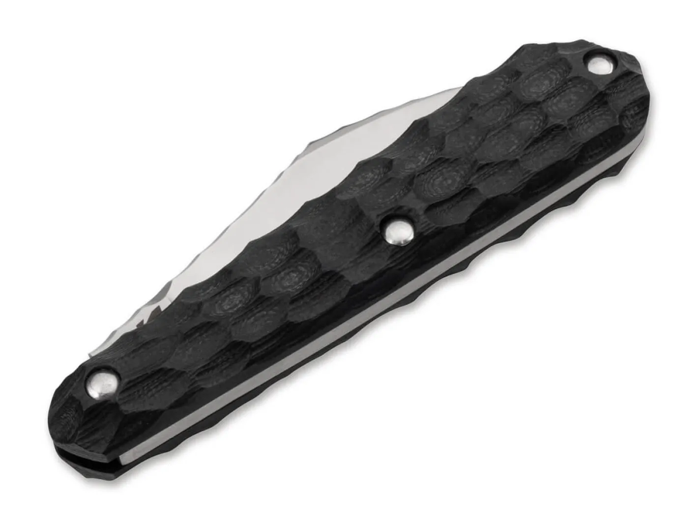 Dem ukrainischen Messermacher Alexander Krava gelingt es in seinen Entwürfen vortrefflich, Form und Funktion auf höchstem Niveau zu vereinen. Angelehnt an Koteyka, einem unter Kennern der Computerszene nicht ganz ernst gemeinter Virus mit einer Katze als Gallionsfigur, entwarf der Designer das gleichnamige Slipjoint-Messer. Dreidimensional gefräste G10 Griffschalen sorgen mit samtpfotiger Tatzen-Struktur bis zum Klingenrücken für unvergleichlichen Halt, während die D2 Klinge mit Stonewash-Finish in Lauerstellung liegt und erst mit einem leisen Schnurren des Nagelhaus auf ihre Beute aus alltäglichen Schneidarbeiten losgelassen wird. Auch ohne Verriegelungsmechanismus wird die Klinge sicher von der straffen Feder gehalten. Ohne Clip und ohne Fangriemenöse, dafür mit viel geheimnisvoller Eleganz.