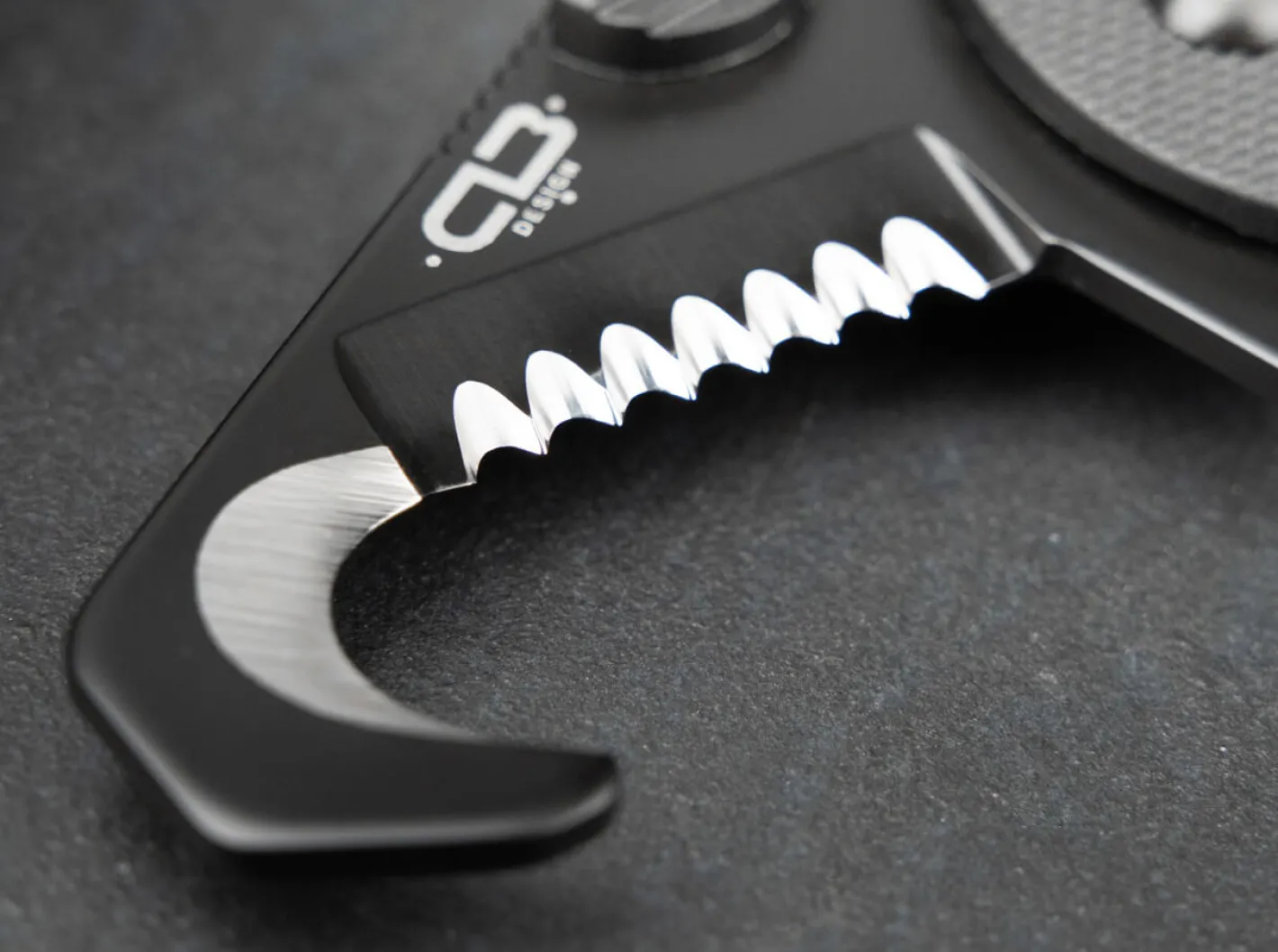 Das ultrakompakte Böker Plus Rescom basiert auf dem beliebten Böker Plus Subcom von Chad Los Banos, ist aber anders als das Ursprungsmodell mit einer vielseitigen Multifunktionsklinge ausgestattet. Die ungebrochene Beliebtheit des handlichen Rettungstools bei professionellen Einsatzkräften und Ersthelfern hat uns nun dazu veranlasst, diesen nützlichen Klassiker unseres Sortiments in einer modernisierten Version neu aufzulegen. Das Böker Plus Rescom 2.0 ist mit einer schwarz beschichteten Rettungsklinge aus D2 ausgestattet, die zahlreiche praktische Funktionen vereint und im Notfall Leben retten kann. Sie wird mithilfe des beidseitigen Daumenpins geöffnet und von der zwei Millimeter starken Stahlplatine des Framelocks sicher arretiert. Ein ausgeprägter Handschutz erhöht den Griffkomfort und verhindert ein Abrutschen in die Klinge. Die strukturierte Griffschale aus schwarzem Zytel ist mit dreidimensionalen Fräsungen versehen und liegt dank dieser Oberflächenstruktur, der ergonomischen Formgebung und Riffelungen im Bereich der Daumenauflage auch bei Nässe stets sicher in der Hand. Mit Fangriemenöse und umsetzbarem Clip (Tip-up/Tip-down).