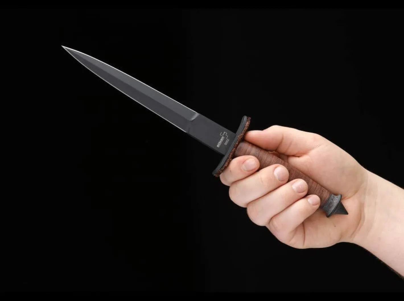 Im Juli 1942 wurde die Devil’s Brigade, die sogenannte Teufelsbrigade, ins Leben gerufen. Unter der offiziellen Bezeichnung 1st Special Service Force wurden amerikanische und kanadische Soldaten zu einer Spezialeinheit zusammengefasst, die speziell für den Kampf hinter den feindlichen Linien ausgebildet war. Die Wurzel vieler Spezialeinheiten nach dem zweiten Weltkrieg lässt sich bis zu dieser Einheit zurückverfolgen. Die vielen Nachtaktionen, für die wohl erstmals konsequent zur Tarnung alle Gesichter geschwärzt wurden, brachte ihnen bei der deutschen Wehrmacht auch den Spitznamen Schwarze Teufel ein, was vom großen Respekt des Gegners vor dieser relativ kleinen Einheit zeugt. Die 1st SSF brachte 1943 bis 1944 viele erfolgreiche Einsätze in Italien und Frankreich hinter sich und konnte für den Kriegsverlauf wichtige Situationen entscheidend beeinflussen.Ein wichtiger Ausrüstungsgegenstand der Devil’s Brigade war das speziell entworfene V-42 Kampfmesser, das auch Bestandteil des intensiven Nahkampftrainings war. Der Griff aus gepressten Lederscheiben läuft in einem spitz zulaufenden Schlagstück aus. Eine dünne Lederpolsterung unter dem leicht gebogenen Parierelement sollte Verletzungen beim Zustoßen verhindern. Die beschichtete Klinge aus dem nicht rostfreien Kohlenstoffstahl SK-85 ist beidseitig geschliffen und weist im Bereich des Ricasso eine geriffelte Daumenauflage auf. Noch heute ziert dieser legendäre Dolch das Wappen der Special Forces der US Army. Wir liefern dieses ausgesuchte Sammlerstück nicht nur mit der klassischen, tief sitzenden Lederscheide, sondern auch mit einer Replik des Textilabzeichens der Einheit, der roten Speerspitze, sowie mit einer Reproduktion des originalen, deutschsprachigen Aufklebers mit dem Text „Das dicke Ende kommt noch!“ samt 1st SSF-Abzeichen aus, der zur Demoralisierung nachts hinter den feindlichen Linien auf Wände, Autos, Mauern, Türen usw. geklebt wurde. Ein militärhistorisch sammelwürdiges Ensemble.Leider kam es bei diesem Artikel im aktuellen Katalog zu einem Druckfehler, gültig ist der hier angezeigte Klingenstahl. Wir bitten den Druckfehler im Katalog zu entschuldigen und danken für Ihr Verständnis.