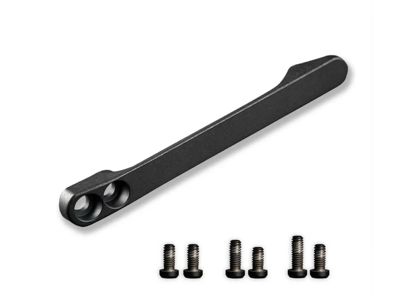 Taschenclip aus schwarzem Titan passend für viele Messer folgender Modellreihen. CIVIVI: Baklash, Praxis, Chevalier, Mini Asticus, Riffel, Lazar, Chronisch, Exarch, Keen Nadder, Cogent, Reliquie, Verschwörer und Altus. WE Knife: Elementum, Upshot, Subjugator, Culex und Soothsayer. Sencut: Brazoria, Sachse und Crowley. 3 Schraubensets verschiedener Größe bestehend aus je 2 Schrauben im Lieferumfang enthalten.