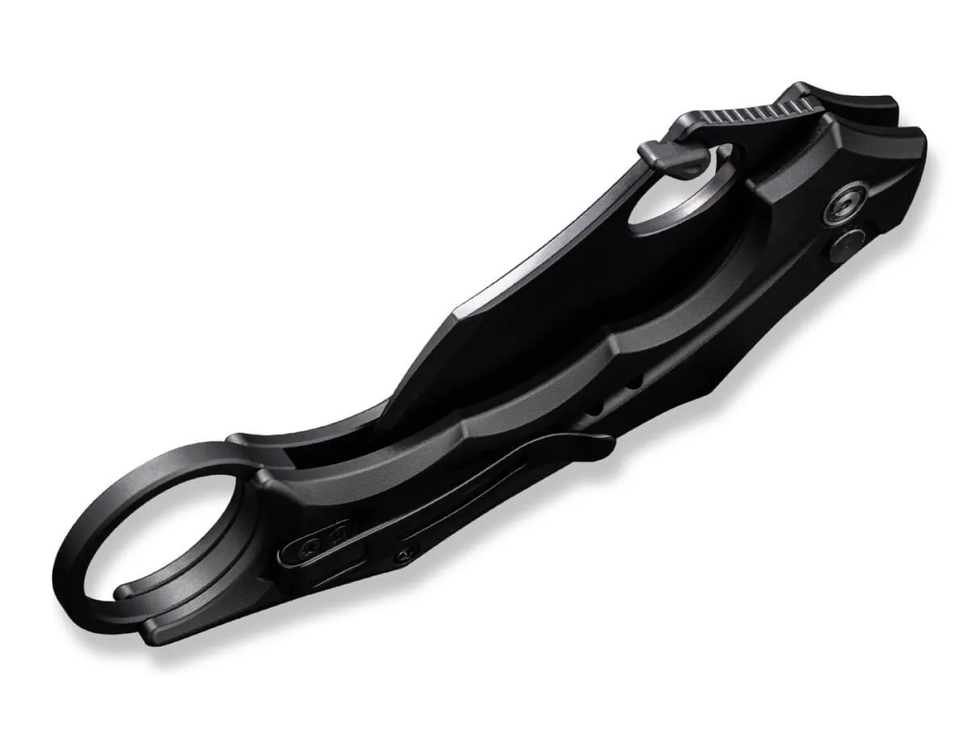 Scharfe Klinge, scharfes Design. Das CIVIVI Incisor II ist ausschließlich auf Vorwärtsdrang getrimmt. Als dynamisches Karambit ist das komplett schwarze Taschenmesser mit einer Hawkbill-Klinge aus Nitro-V sowie einem robusten, handschmeichelnden Aluminiumgriff ausgestattet. Für die nötige Flexibilität kann das Incisor II wahlweise per Daumenöffnung, Flipper oder Wave Opener geöffnet werden, während der Button Lock zur Verriegelung das intuitive Bedienkonzept abrundet. Typisch Kerambit ist der auffällige Ring am Griffende, der variable Trage- und Anwendungsvarianten erlaubt. Mit umsetzbarem Tip-Up Clip.