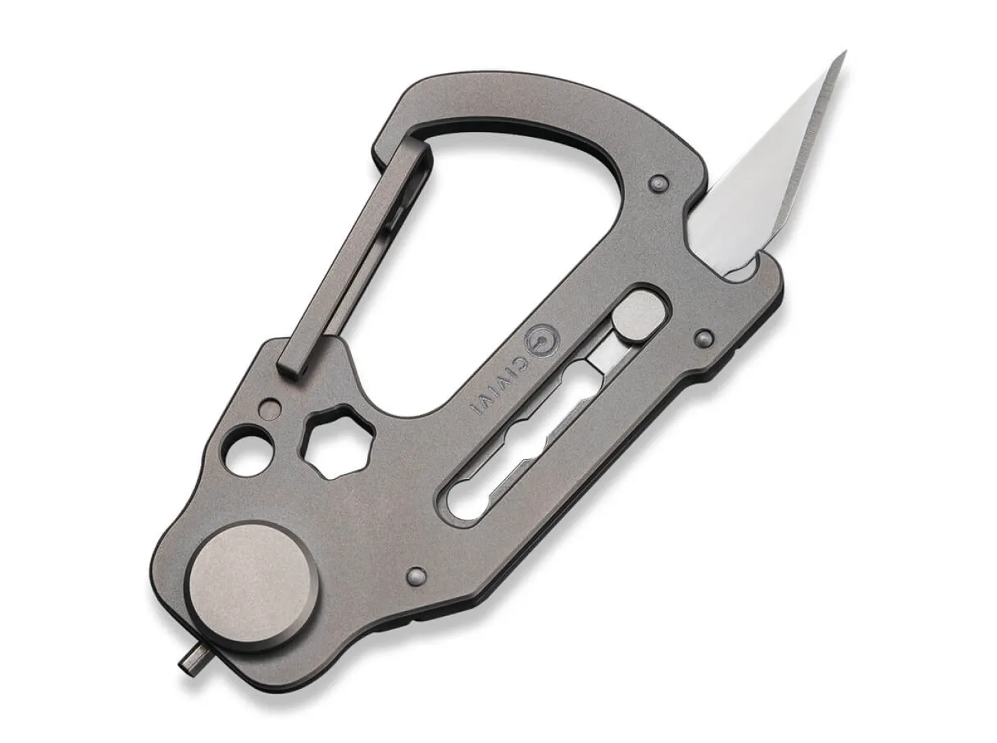 Hier ist der Name Programm. Das vielseitige und kompakte Multitiool hat viele Gesichter und präsentiert sich als praktischer Helfer im Alltag. Seine Konstruktion aus grauem Titan enthält einen Karabiner sowie eine herausschiebbare Klinge aus 9Cr18MoV. Das kleine Rad im hinteren Bereich ist u.a. mit Inbus und Torx ausgestattet. Lieferung mit 3 Klingen.