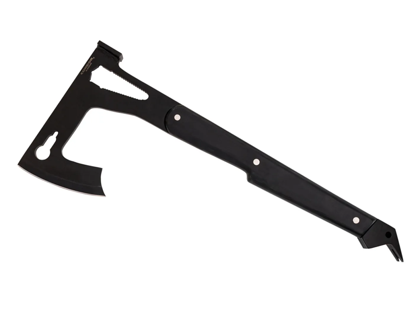Nach einer mehrjährigen Entwicklungsphase, in deren Verlauf das Blackout Hawk zu seiner heutigen Form gefunden hat, präsentiert Tony Lennartz hier in Zusammenarbeit mit Condor nun die ultimative Notfallaxt. Die Gratwanderung, das Blackout Hawk mit diversen Zusatzfunktionen auszustatten, ohne die Gesamtfunktionalität in irgendeiner Weise zu beeinträchtigen, hat Lennartz hier ausgezeichnet gemeistert.So ist das Blackout nicht nur mit ener Beilschneide mit langem Bart ausgestattet. Die rückwärtige Hammerfläche erweitert das Einsatzspektrum ungemein, während die Aussparungen im Erl für Sechskantschrauben/-muttern und zum Brechen von Schließzylindern dienen. Am Griffende ist ein in Querachse ausgerichtetes Stemmeisen verbaut, so dass beim Hebeln und Aufstemmen eine überdurchschnittlich hohe Kraft entsteht.Das ganze Hawk besteht aus 1075-Kohlenstoffstahl, der zur Erhöhung der Widerstandsfähigkeit und Korrosionsbeständigkeit schwarz pulverbeschichtet ist. Die Schneide wird für den Einsatz mit der im Lieferumfang enthaltenen Kydexabdeckung gesichert, so dass der Einsatz der übrigen Werkzeuge gefahrlos möglich ist. Die Griffschalen sind aus schwarzem Micarta gefertigt. Das ultimative Notfallwerkzeug, wenn es hart auf hart kommt.