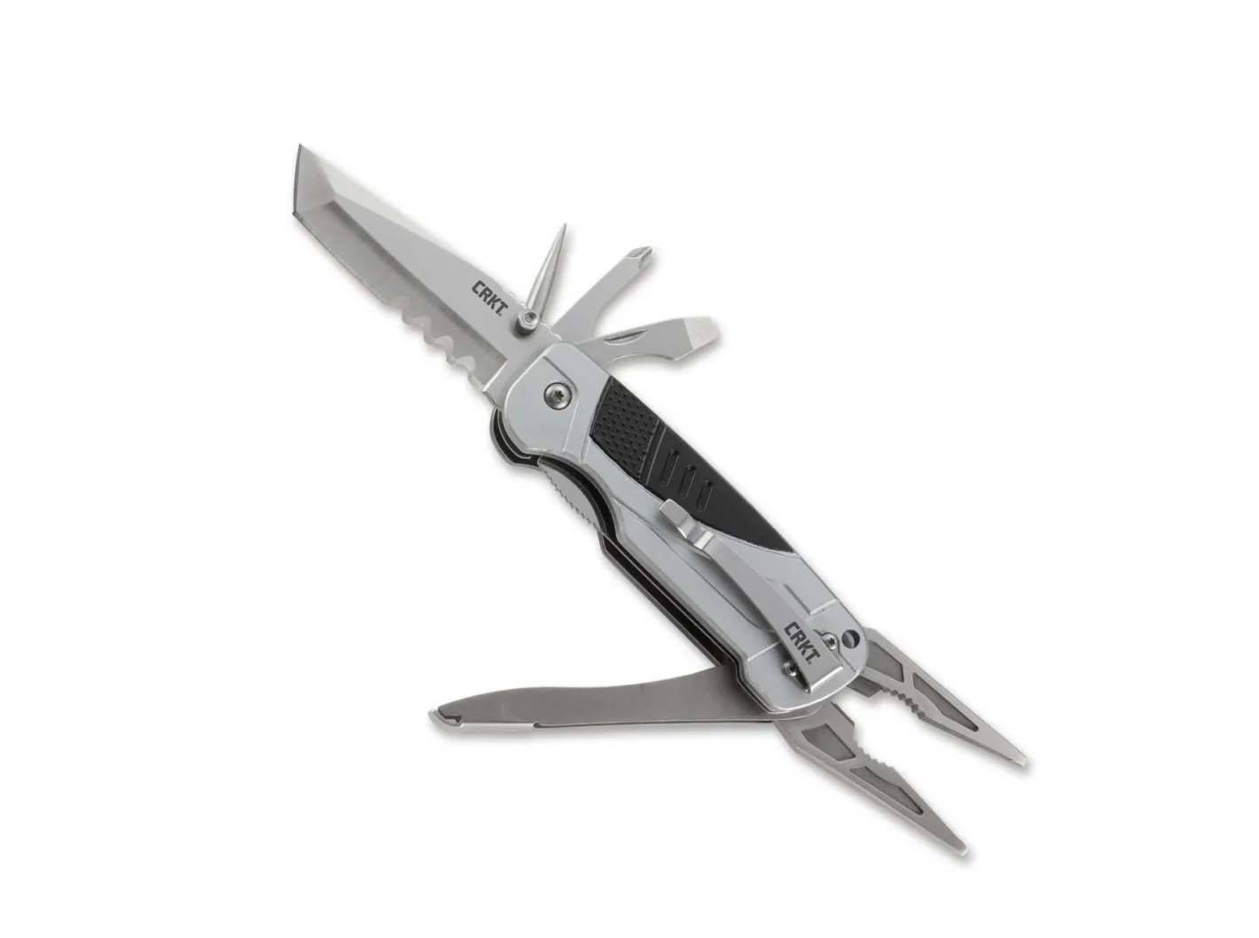 Nicht nur Extremkletterer schätzen ein Tool, das auch einhändig schnell zum Einsatz gebracht werden kann. So öffnet die Spitzzange auf Knopfdruck automatisch und ist sofort und ohne Verzögerung einsatzbereit. Die Tantoklinge mit Veff Flat Top Serrations öffnet per Daumenknopf manuell und verriegelt per Liner Lock. Zusätzlich bietet das Bivy einen Kreuzschlitzschraubendreher, einen Schlitzschraubendreher und einen Marlspieker zum Lösen von Knoten, wobei diese drei Werkzeuge ebenfalls arretieren und über einen zentralen Schieber auf der Griffschale entriegelt werden können. Mit Fangriemenöse.