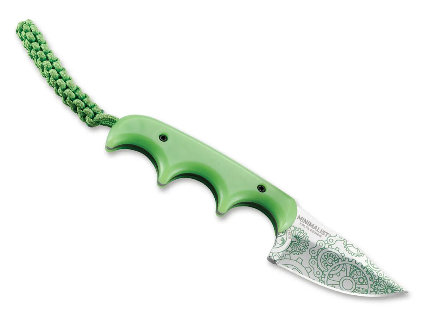 Die CRKT Minimalist Serie von Alan Folts begeistert seit Jahren zahlreiche Fans. Das Einsatzspektrum des beliebten Messers ist beträchtlich, besonders als Neck Knife erweisen sich die verschiedenen Modelle als echte Allrounder. Die klassische Bowie-Klinge aus 8Cr13MoV ist mit dreidimensional wirkenden Zahnrädern bedruckt und eignet sich für alle kleinere Schneidarbeiten in der Wildnis oder auf der Jagd. Selbstverständlich wird aber auch der urbane Alltag durch die Vielseitigkeit dieser traditionellen Klingenform mit Leichtigkeit bewältigt. Kaum ein anderes Messer bietet bei derart kompakten Abmessungen und einem so geringen Gewicht dieses Maximum an Ergonomie. Die Scheide aus GFK wird von Hand an das Messer angepasst.