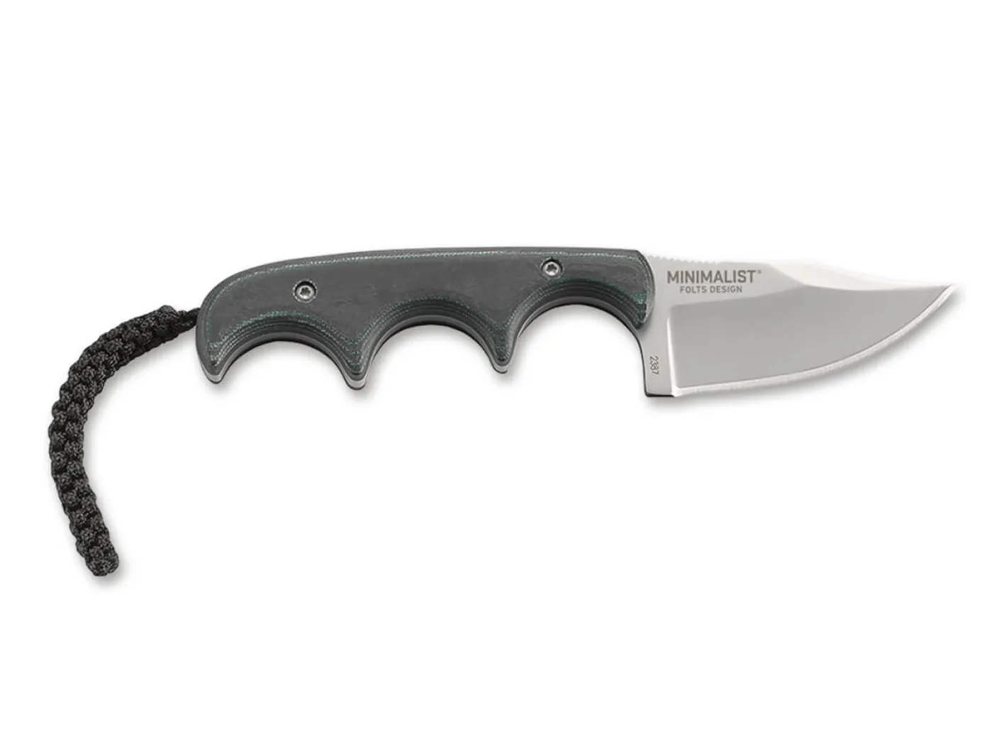 Die CRKT Minimalist Serie von Alan Folts begeistert seit Jahren viele Fans. Das Einsatzspektrum des beliebten Messers ist beträchtlich, besonders als Neck Knife erweisen sich die verschiedenen Modelle als echte Allrounder für alle kleineren Schneidarbeiten des Alltages. Die klassische bauchige Bowie-Klinge aus 5Cr15MoV ist geeignet für kleinere Arbeiten rund um Camp und Jagd. Natürlich wird auch der urbane Alltag durch die Vielseitigkeit dieser traditionellen Klingenform mit Leichtigkeit bewältigt. Kaum ein anderes Messer bietet bei derart kompakten Abmessungen und einem so geringen Gewicht dieses Maximum an Ergonomie. Die mitgelieferte Zytel-Scheide mit Tragekordel wird von Hand an das Messer angepasst.