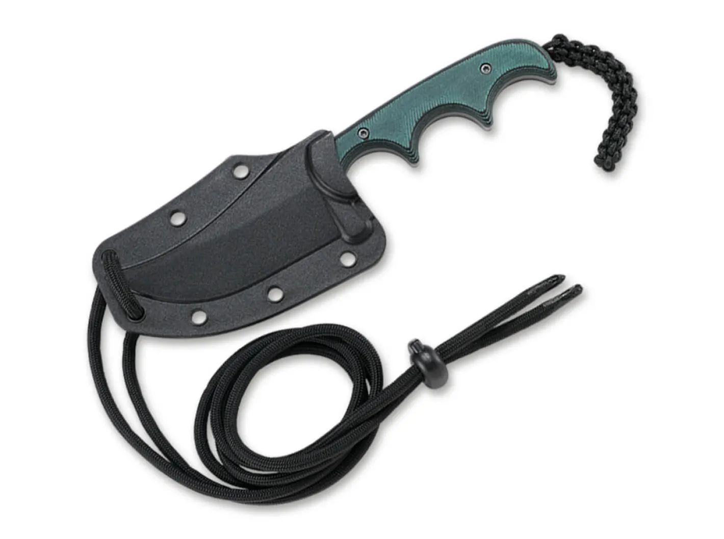 Die beliebte Messerreihe von Alan Folts bekommt einen exotischen Ableger. Das CRKT Minimalist Persian trägt eine persische Klinge aus 8Cr13MoV mit der typisch hochgezogenen Klingenspitze. Der ergonomische Griff aus Micarta ist in einem petrolgrün gehalten und liegt dank ergonomischer Fingermulden auch bei schwierigen Schneidaufgaben perfekt in der Hand. Mit passgenauer Kunststoffscheide, Clip und Lanyard.