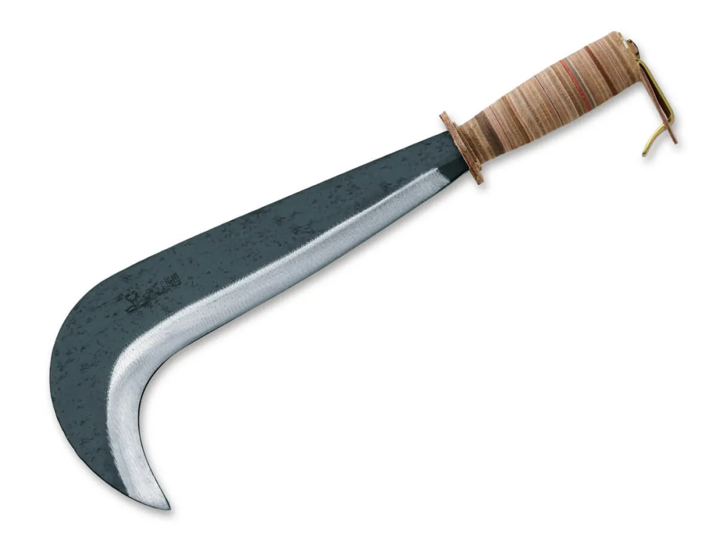 Das klassische Billhook-Messer spielt seine Stärken insbesondere in der Land- und Forstwirtschaft aus. Die typisch bauchige Klinge aus C60 Kohlenstoffstahl hat eine hakenförmige Spitze, wodurch Schneiden, Hacken oder Graben ein Leichtes wird. Der Griff des feststehenden 2C 262/28 ist mit einem Parierelement ausgestattet und mit Leder umwickelt.