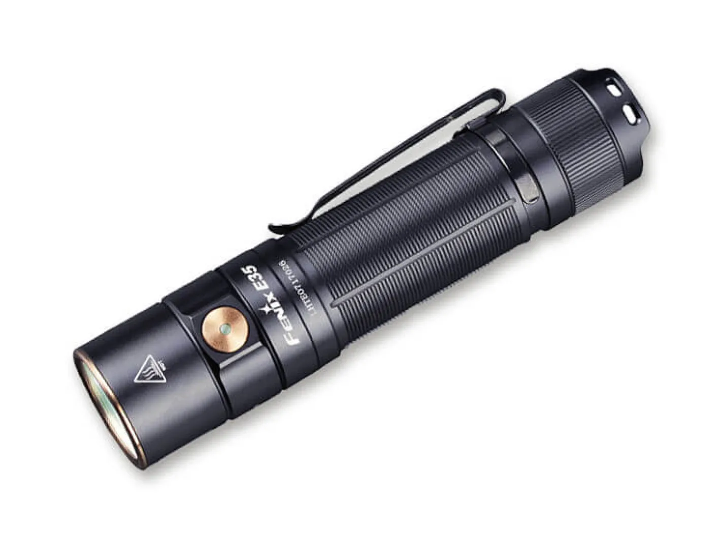 Die E35 V3.0 ist eine kompakte Taschenlampe mit beeindruckenden 3000 Lumen maximaler Helligkeit. Sie vereint fünf Helligkeitsstufen (3000/1200/450/150/50) und einen Strobe-Modus. Die maximale Leuchtweite beträgt 240 Meter. Dabei ist die Bedienung über den Frontschalter denkbar einfach. Die Tastensperre verhindert das versehentliche Einschalten. Eine digitale Regelung der Helligkeit und die Wasserdichtigkeit nach IP68 sind für Fenix selbstverständlich. Und die Kapazitätsanzeige informiert Sie über den Zustand des im Lieferumfang enthaltenen über USB-C aufladbaren 21700 Industrie Lithiium-Iionen Akku. So ist die Fenix UC35 V3.0 der ideale Begleiter, egal ob zu Hause, Outdoor oder in der Industrie. Gefertigt aus hochwertigem Aluminium, Frontscheibe aus gehärtetem Glas mit Anti-Reflex-Beschichtung. Mit abnehmbarem Gürtelclip.