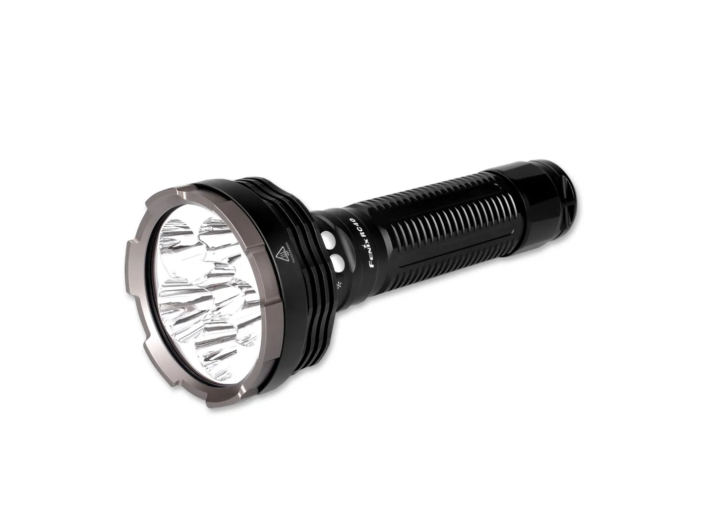 Die Edition 2016 der Fenix RC40 hinsichtlich der Kombination aus Leuchtkraft und Reichweite einer der Spitzenreiter in unserem Sortiment. Mit 6000 Lumen (ANSI) Maximalleistung und einer Reichweite von bis zu 730 Meter(Herstellerangabe) bietet die aufladbare RC40 dank der Cree XM-L2 (U2)-LED mehr als genug Leuchtkraft für alle Situationen. Der spezielle Li-Ionen-Akku ist mit dem im Lieferumfang enthaltenen Netzgerät in der Lampe aufladbar, wobei Status-LEDs in der Endkappe jederzeit Auskunft über den Ladezustand geben. Neben dem 220V-Netzgerät ist zusätzlich ein KFZ-Lader (12V) im Lieferumfang enthalten. Die USB-Buchse in der Endkappe bietet im Notfall die Möglichkeit, den Akku in der Lampe als Powerbank zu nutzen. Die fünf Leuchtstufen (6000/4000/2000/500/45 Lumen)werden von einem SOS- beziehungsweise Strobe-Modus ergänzt. Die zwei Seitenschalter erlauben eine einfache Bedienung und sind zusätzlich mit einer Lockout-Funktion ausgestattet. Die Lieferung erfolgt mit einem hochwertigen Schulterriemen. Der Durchmesser beträgt am Korpus 52 Millimeter, am Kopf 108 Millimeter.