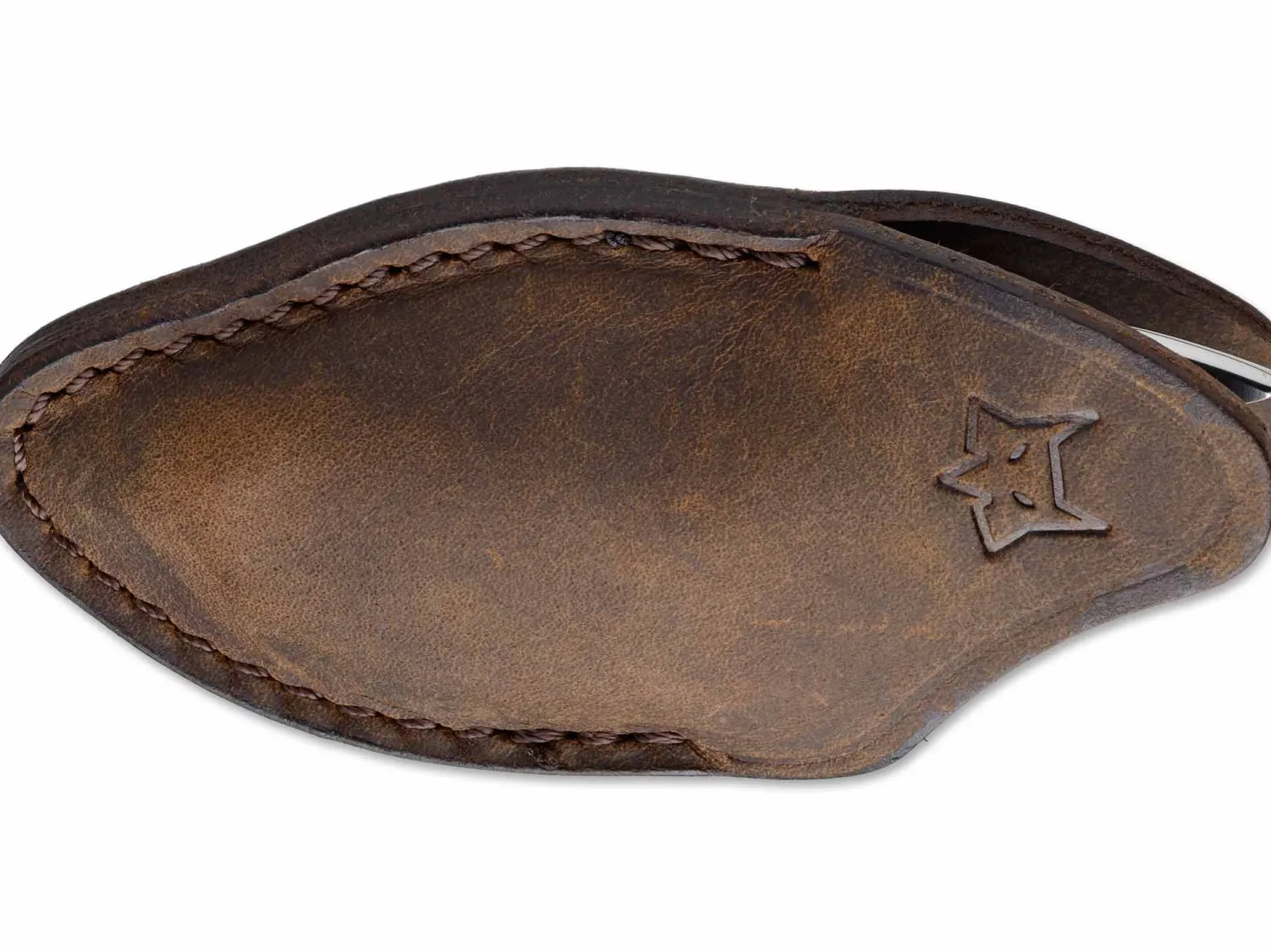 Friction Folder erfreuen sich immer größerer Beliebtheit. Der extrem simpel aufgebaute Mechanismus der Taschenmesser kommt ohne jede Arretierung oder Feder aus und besitzt eine frei schwingende Klinge. Der in geschlossenem Zustand hervorstehende Klingensporn dient nicht nur zum einfachen Öffnen der Klinge, sondern bietet durch das Auflegen des Daumens im Gebrauch auch eine ähnliche Bediensicherheit wie ein verriegelndes Messer. Bastinelli überträgt dieses jahrhundertealte Prinzip auf ein modernes Taschenmesser, das dem Anspruch an ein modernes Werkzeug für den Alltag absolut gerecht wird. Die Klinge wird aus dem bewährten Böhler N690 gefertigt und besitzt keinen Clip. Die Lieferung erfolgt mit einem Stecketui aus Antikleder.