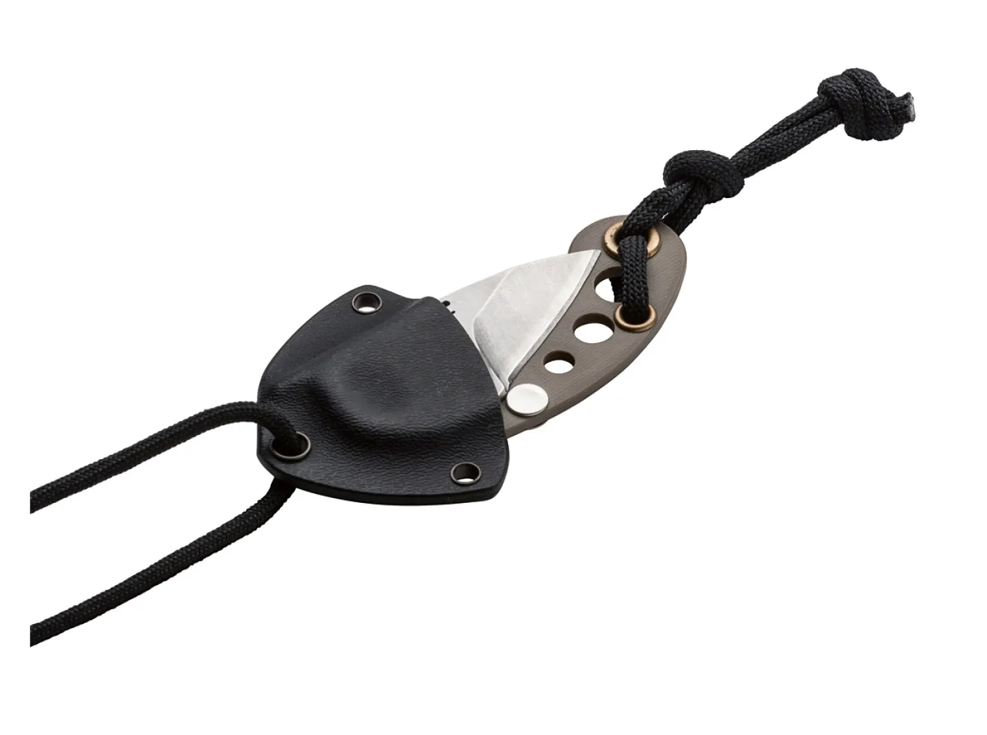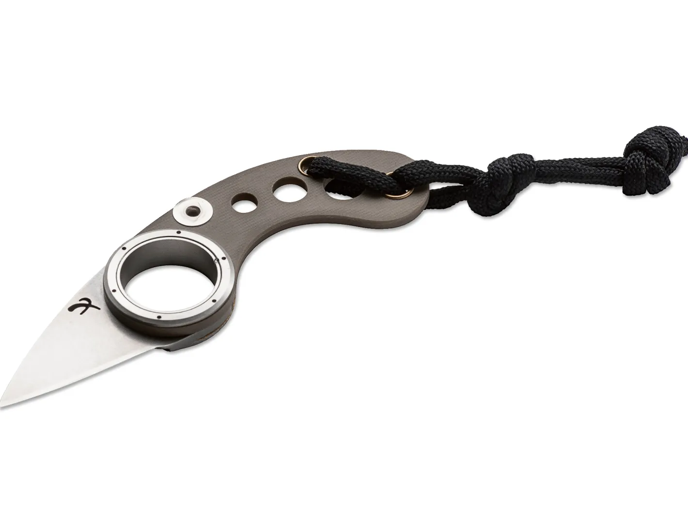 Die klappbare Version des Klassikers von Fred Perrin, das La Griffe, ist als Friction-Folder ausgeführt. Die Klinge aus 440C dreht sich ohne Feder oder Verriegelung um eine sehr aufwändig gestaltete Klingenachse, die gleichzeitig den Zeigefinger aufnehmen kann. Der Griff besteht aus sandfarbenem G10. Auch bei diesem Neck Knife wurde auf alles Unnötige verzichtet. Auslieferung mit Fangriemen, Kydexscheide und Trageschnur.