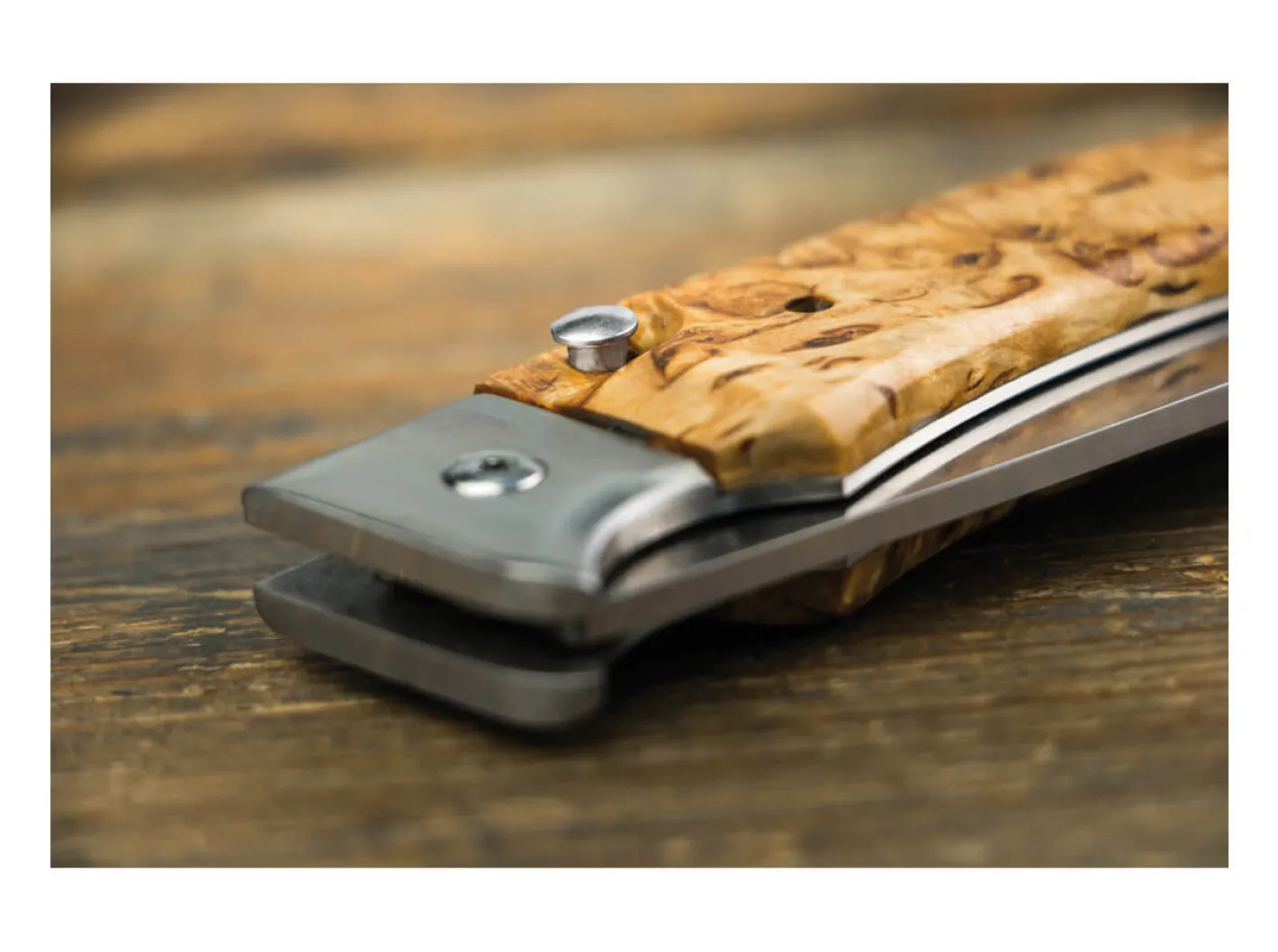 Ein erstklassiges Taschenmesser wie das Nallo von Karesuando begleitet einen ein Leben lang. Die Klinge wird aus Sandvik 12C27 gefertigt und auf 58 HRC gehärtet. Es besitzt eine leicht zu bedienende Verriegelung, die zwar auf dem Linerlock basiert, jedoch über den Knopf in der Griffschale sehr leicht und komfortabel zu bedienen ist. Die Beschalung besteht aus dem Holz der nordischen Maserbirke, die vor allem so weit jenseits des Polarkreises sehr langsam wächst und hinsichtlich Dichte und Stabilität das mitteleuropäische Birkenholz weit übertrifft. Ein besonderes Merkmal ist der Anhänger aus Lederband und Rentierhorn.