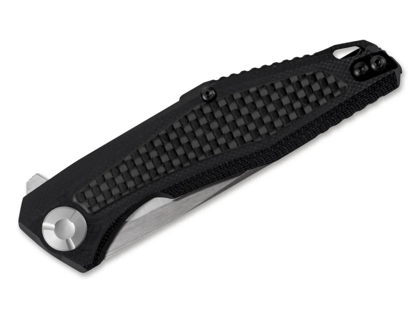 Das Atmos ist ein vielseitiges EDC Messer mit Hang zu Outdoor Aktivititäten. Das von Dmitry Sinkevich entworfene Taschenmesser ist mit einer Droppoint-Klinge aus 8Cr13MoV versehen, die dank ihrer Kugellagerung geschmeidig per Flipper öffnet. Der Griff ist aus G10 ist mit einem sicheren Liner Lock versehen und trägt Carbon Inlays als optische Highlights. Mit Fangriemenöse und umsetzbarem Clip (Tip-up/l+r).