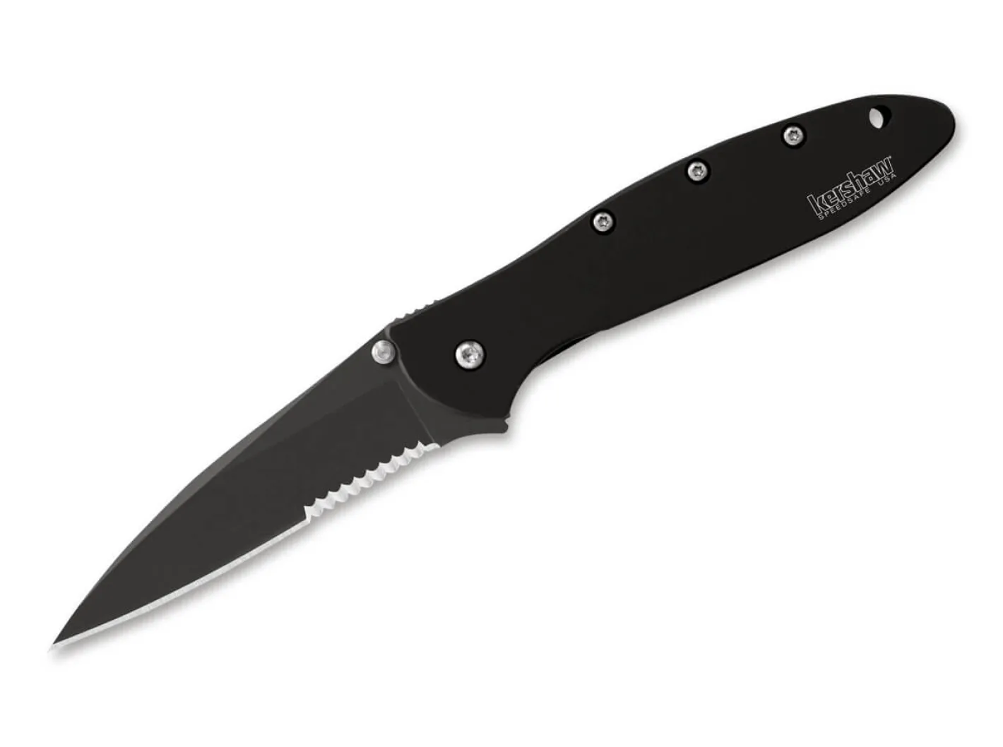 Hinweis: Seit dem 31.10.2024 gilt in Deutschland ein generelles Umgangs- und Besitzverbot von Springmessern aller Art. Es handelt sich ab sofort um verbotene Gegenstände, deren Besitz strafbar ist. Der Besitz von bestimmten Springmessern ist gem. Anlage 2 zum Waffengesetz Abschnitt 1 Nummer 1.4.1 nur noch Personen erlaubt, bei denen ein berechtigtes Interesse besteht, das eine einhändige Nutzung erforderlich macht (etwa aufgrund eines fehlenden Arms oder einer fehlenden bzw. dysfunktionalen Hand), oder der Umgang im Zusammenhang mit der Berufsausübung (z.B. Jagd, Handwerk) oder dem Sport (z.B. Segeln oder Bergsteigen) erfolgt. Gleiches gilt für gewerbliche Händler oder Hersteller solcher Messer. Die Abgabe erfolgt daher nur noch an berechtigte Personen. Bitte prüfen Sie vor der Bestellung, ob ein solches berechtigtes Interesse bei Ihnen vorliegt.Das Kershaw Leek Black Serrated ist ein schlankes EDC Messer, das komplett mit einem schwarzen Cerakote-Finish versehen ist und dadurch eine widerstandsfähige Oberfläche erhält, die nebenbei noch sehr gut aussieht. Seine Klinge aus hochleistungsfähigem Sandvik 14C28N öffnet federunterstützt wahlweise per Daumenpin oder Flipper und wird durch den soliden Frame-Lock im Edelstahl-Griff gehalten. Der Teilwellenschliff erweitert hierbei das Spektrum der Schneidarbeiten um ein Vielfaches. Der umkehrbare Deep-Carry-Clip (Tip-Up / Tip-Down) ermöglicht ein diskretes Tragen des Taschenmessers. Hergestellt in den USA.