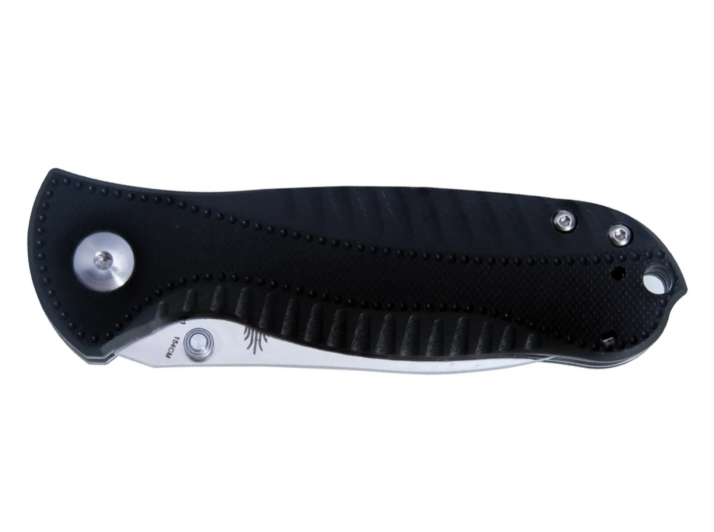 Jagd- und Outdoortaschenmesser mit G10-Beschalung und Edelstahlplatinen. Die Klinge wird aus 154CM gefertigt und verriegelt per Linerlock. Mit umsetzbarem Clip (Tip-up/l-r) und Fangriemenöse.