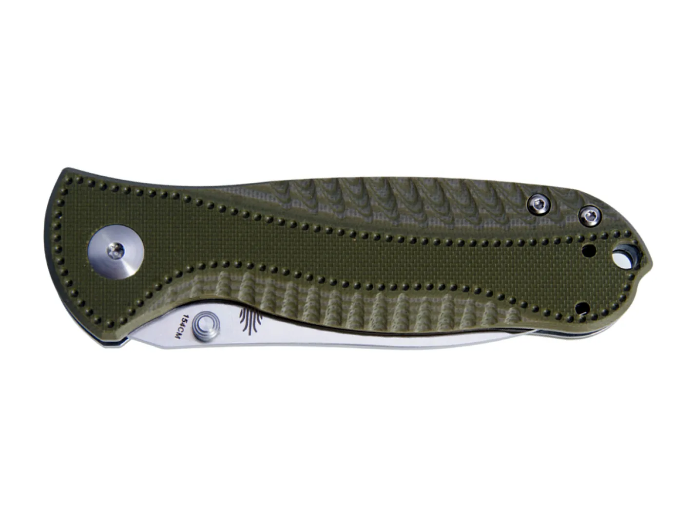 Jagd- und Outdoortaschenmesser mit G10-Beschalung und Edelstahlplatinen. Die Klinge wird aus 154CM gefertigt und verriegelt per Linerlock. Mit umsetzbarem Clip (Tip-up/l-r) und Fangriemenöse.