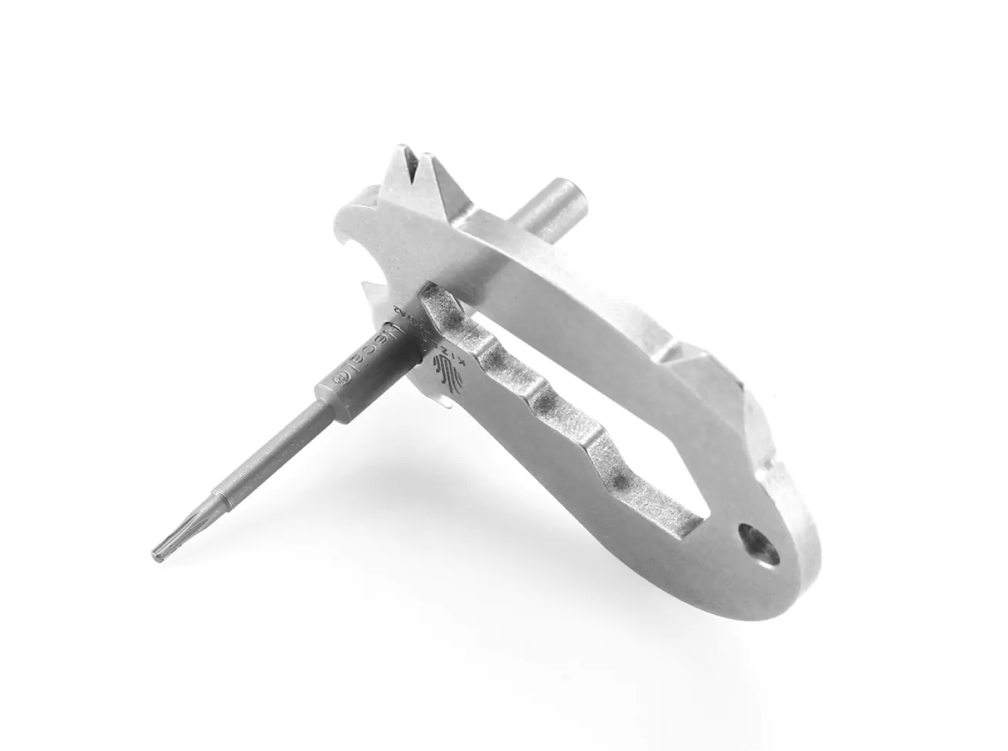 Das Peccary von Kizer ist ein Taschen- und Schlüsselbundwerkzeug mit vier Sechskantschlüsseln, einem Schaber, einem Schlitzschraubendreher, einem Nagelzieher und einem Flaschenöffner.