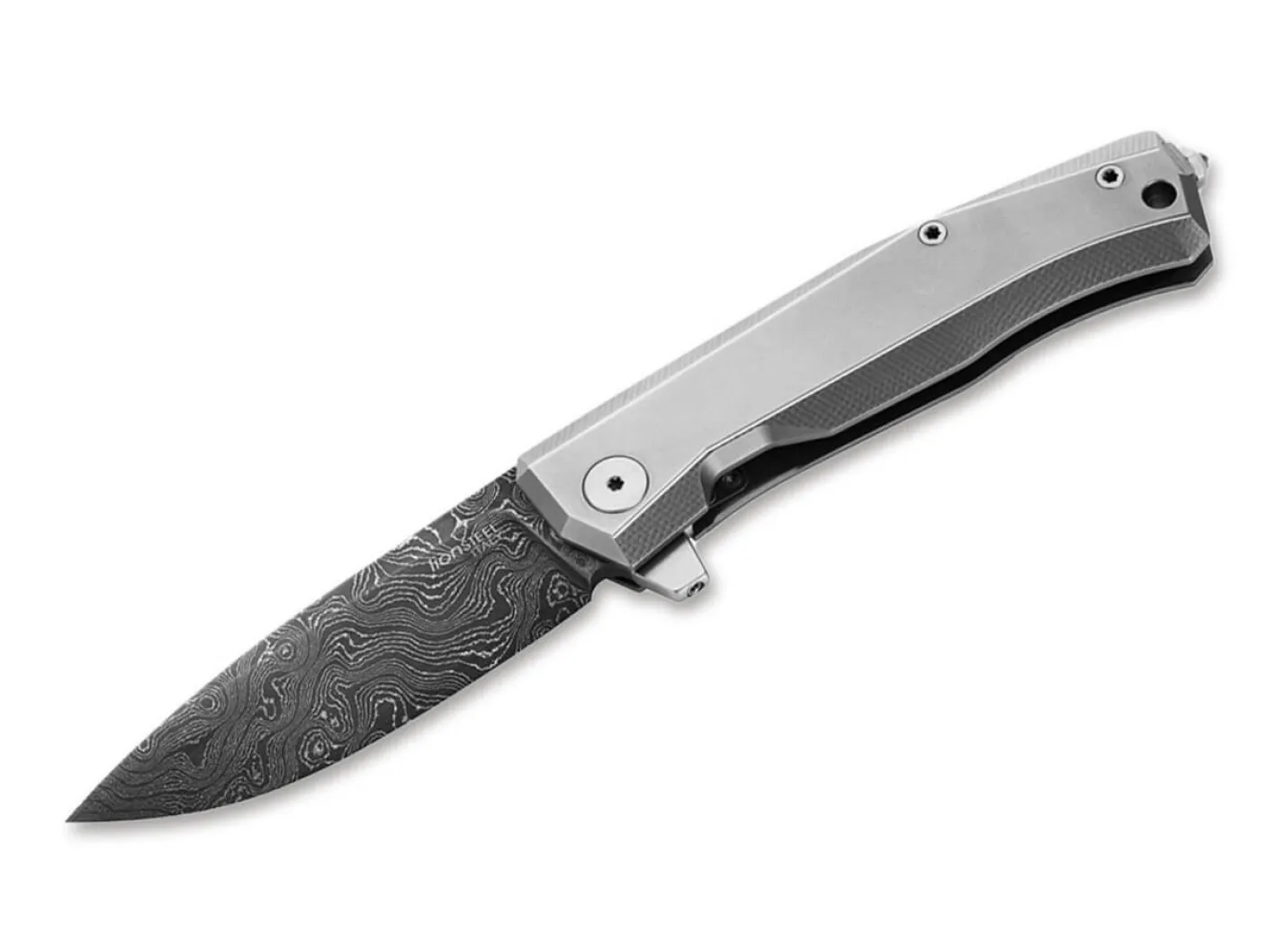 Das beliebte Myto Damascus von LionSteel erweitert die erfolgreiche Linie des Designers Molletta und überzeugt mit einer edlen Damastklinge. Weiterhin zählt das Messer auf die Flipper-Öffnung und den zuverlässigen Framelock. Der ästhetische und zugleich ergonomische Griff ist aus grauem Titan gefertigt und wird von einem Glasbrecher sowie dem dreidimensional gefrästen Clip abgerundet. Mit Fangriemenöse.