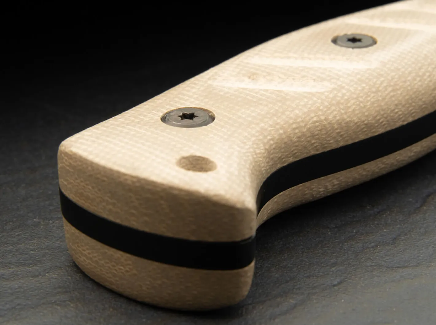 Das eindrucksvolle Magnum Desert Warrior 2.0 ist der ideale Begleiter für jede Mission. Das in Vollerlbauweise konstruierte Einsatzmesser ist mit einer wuchtigen Spearpoint-Klinge aus 440A ausgestattet, die mit einer schwarzen Beschichtung versehen ist. Die markante Fehlschärfe und eine kurze Hohlkehle unterstreichen den taktischen Charakter des Messers. Die aufgeschraubten Griffschalen aus texturiertem Micarta liegen dank der breiten Rillen und der ergonomischen Daumenmulde auch bei schlechten Witterungsbedingungen stets sicher in der Hand. Riffelungen im Bereich der Daumenauflage und am Griffende erhöhen die Arbeitssicherheit zusätzlich. Mit Fangriemenöse und praktischer Nylonscheide.
