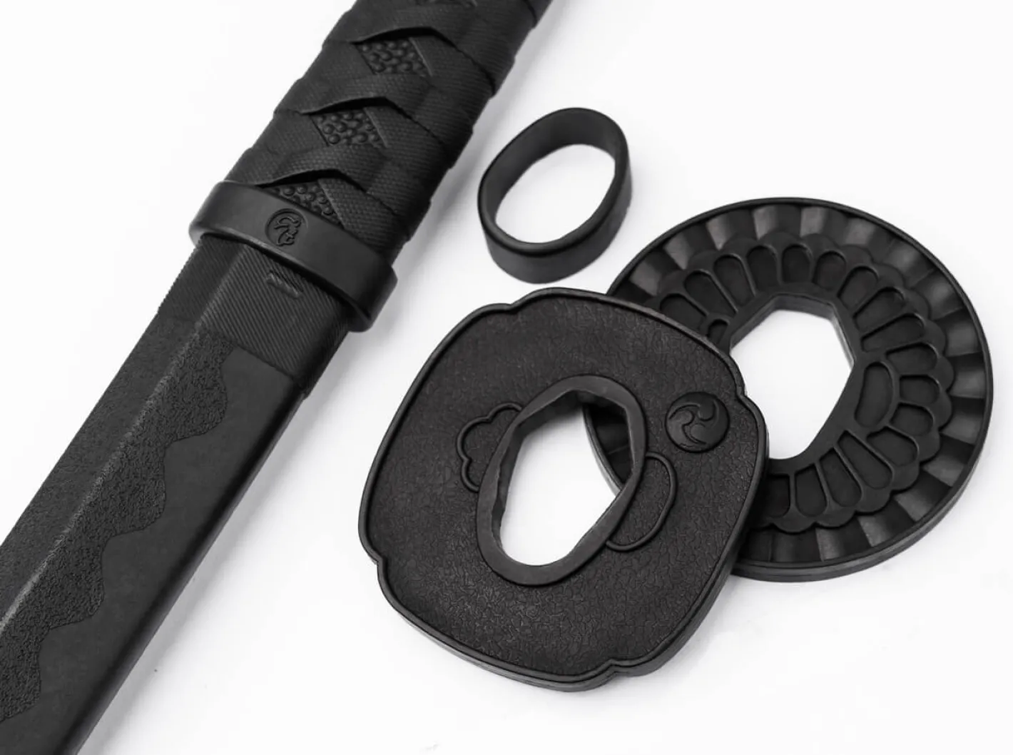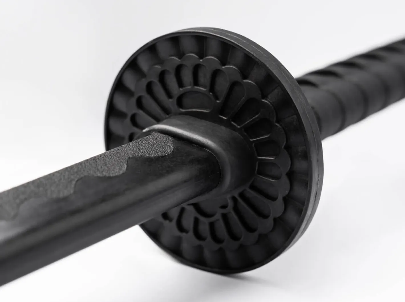 Um seine Fertigkeiten in den japanischen Kampfkünsten wie Iaido, Aikido, Kenjutsu oder Kendo zu verfeinern, kommt für Übungszwecke üblicherweise ein Holzschwert, das Bokken, zum Einsatz. Statt der Verwendung scharfer Klingen wie bei einem Katana oder Wakizashi, stellt das Übungsschwert mit stumpfer Schneide und abgerundeter Spitze eine deutlich risikoärmere Möglichkeit dar, verschiedene Übungsformen zu trainieren. Als erfrischende Alternative zum Bokken vereint das Magnum Kiai das Beste aus zwei Welten. Dank moderner Materialien, liebevoller Details sowie einer naturgetreuen Dimensionierung in Größe und Gewicht lassen sich mit dem Trainingsschwert von der Partnerübung bis hin zu festgelegten Abfolgen von Bewegungsabläufen (Kata) realitätsnah ausführen. Das Magnum Kiai entspricht den Abmessungen eines traditionellen Katana Schwertes und zeichnet sich durch maximale Widerstandsfähigkeit sowie Schockelastizität aus, die durch einen cleveren Materialmix aus Polypropylen und Glasfaser erreicht werden. Aufmerksame Details wie die Blutrinne (Bo-Hi), die Härtelinie (Hamon) oder die Griffwicklung (Tsukamaki) geben dem Übungsschwert einen dekorativen Mehrwert. Je nach individuellem Können oder gewählter Disziplin kann die Tsuba (Stichblatt, Handschutz) problemlos montiert oder demontiert werden. Lieferung mit zwei Tsubas in den Formen Maru-Gata (rund) und Mokko-Gata (Vierpass-Form).