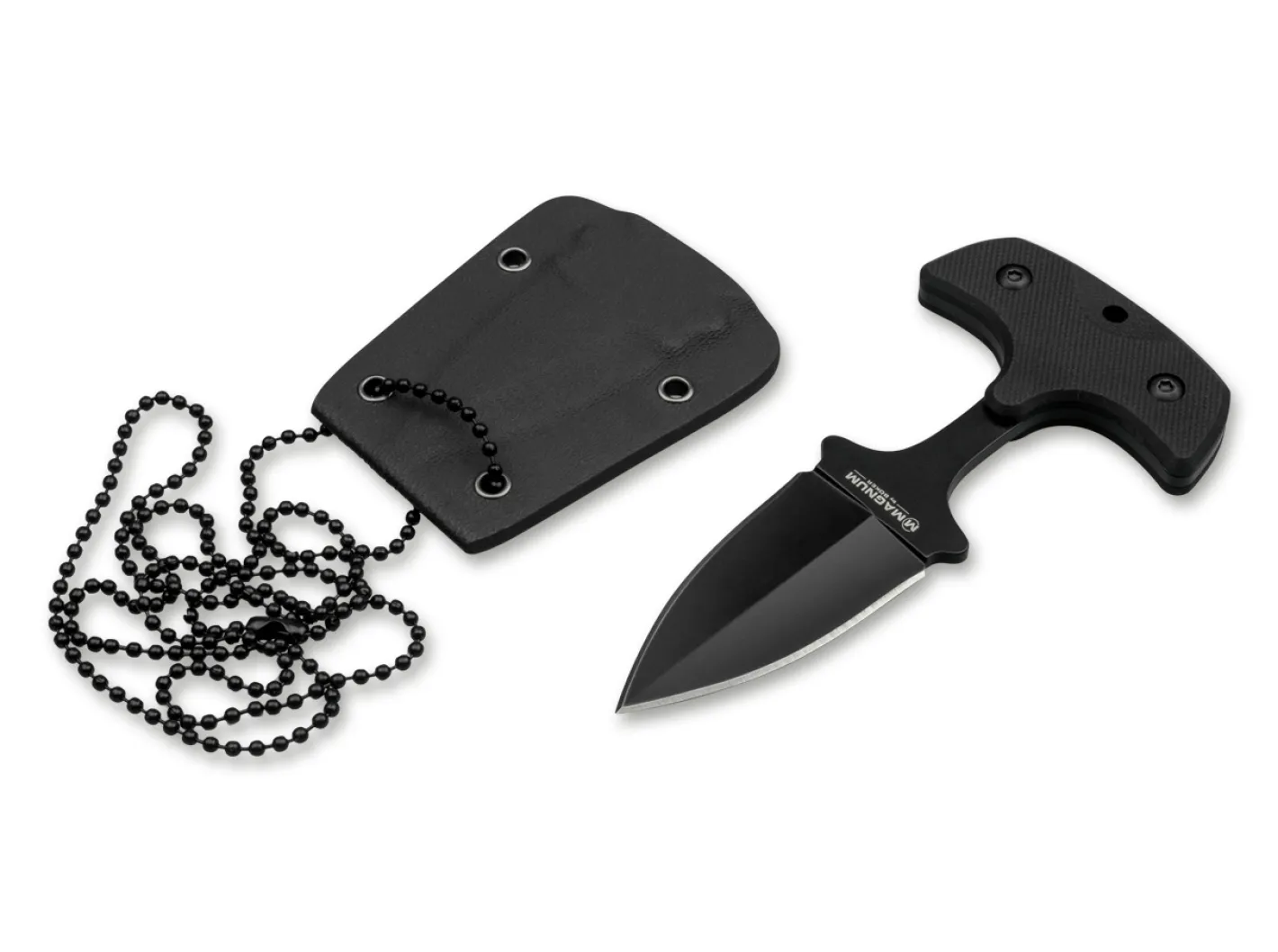 Achtung!Dieser Artikel ist ausschließlich für den Export in zugelassene Märkte bestimmt. Es handelt sich um einen verbotenen Gegenstand gemäß deutschem Waffengesetz. Der Vertrieb in und die Einfuhr nach Deutschland sowie jeglicher Umgang mit diesem Produkt in Deutschland ist verboten. Die Abgabe erfolgt nur an berechtigte Personen, jede Bestellung wird manuell geprüft! Bestellungen aus nicht zugelassenen Märkten werden ohne Rückmeldung gelöscht. Aufgrund der besonderen Rechtslage müssen wir diesen Artikel getrennt von anderen Artikeln versenden, wodurch höhere Portokosten entstehen können. Der Magnum Push Dagger II ist mit einer dunklen, beidseitig abgezogenen Dolchklinge aus 440A ausgestattet. Die äußerst kompakte Kydexscheide erlaubt das sichere Tragen als Neck Knife oder auch lose in der Tasche. Der Faustdolch bietet eine breite Palette an Nutzungsmöglichkeiten an und verfügt dennoch über eine ausgezeichnete Ergonomie.