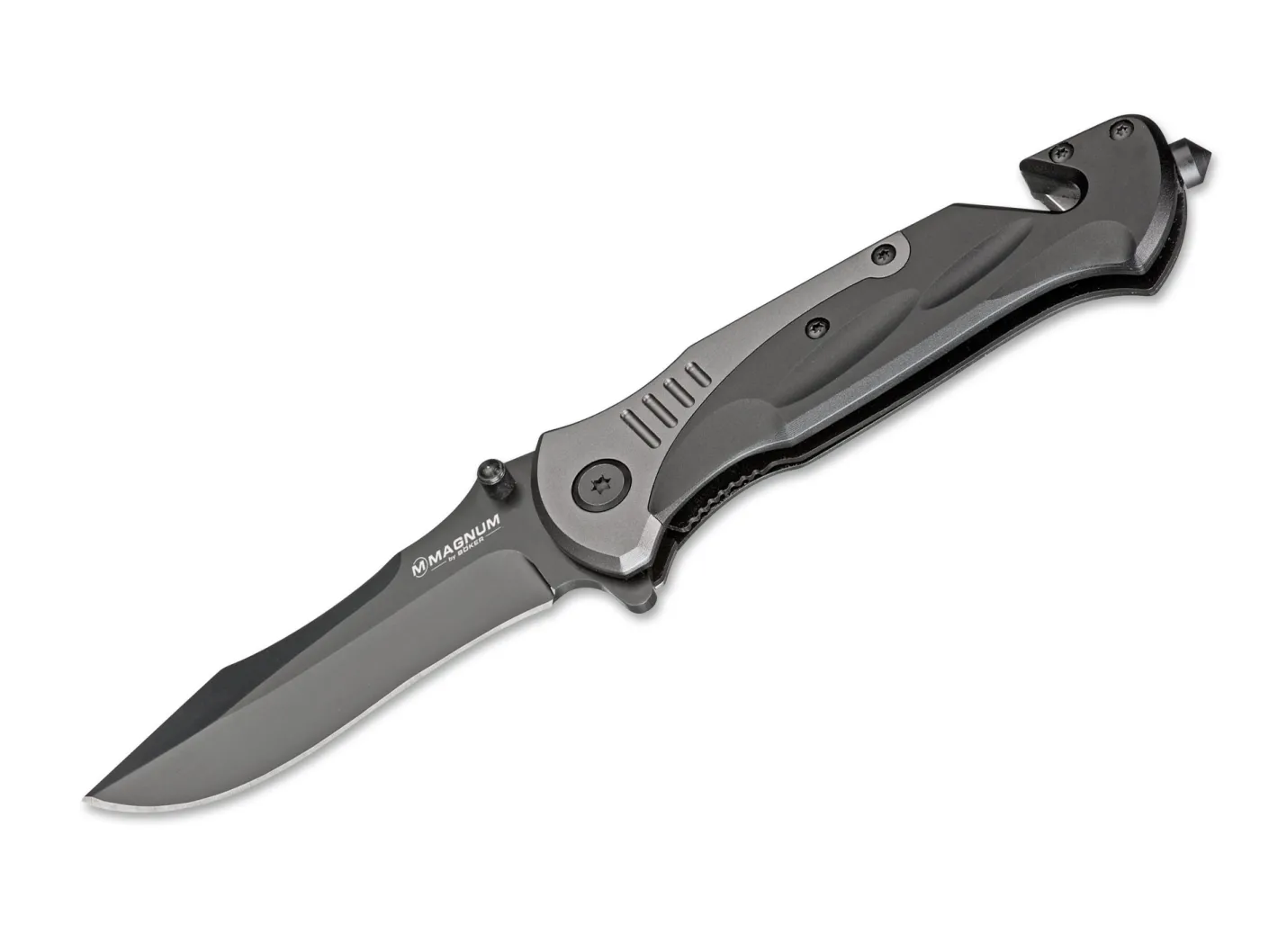Die verkleinerte Ausführung des sehr erfolgreichen Magnum Fire Chief erschließt sich ergonomisch auch kleineren Händen. Konzipiert als Notfallwerkzeug mit Glasbrecher, Gurtschneider und partiellem Wellenschliff. Die rostfreie Klinge aus 440A wird per Flipper geöffnet und ist so immer bereit für den Ernstfall. Ein stabiler Linerlock sorgt für die notwendige Stabilität. Auf der Rückseite des Taschenmessers ist außerdem ein Clip angebracht.
