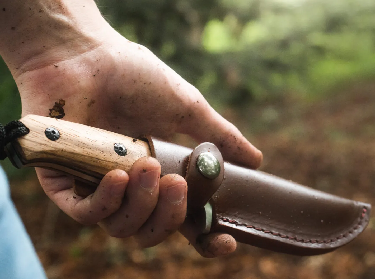 Das Magnum Zebra Drop ist ein formschönes Fahrtenmesser, das mit Griffschalen aus handverlesenem Zebranoholz beeindruckt. Die wunderschöne Maserung des witterungsfesten Holzes wird durch die tiefbraunen Adern zusätzlich betont. Die leicht modifizierte Droppoint-Klinge aus rostfreiem 440A reicht von der Spitze bis zum Griffende durch das gesamte Messer und bietet so enorme Stabilität. Der ausgeprägte Handschutz gewährleistet einen sicheren Einsatz. Mit Fangriemenöse und Gürtelscheide aus Leder mit Druckknopfsicherung.
